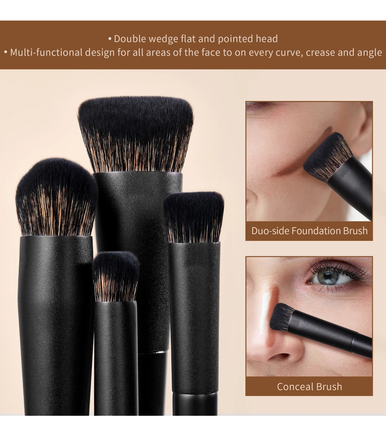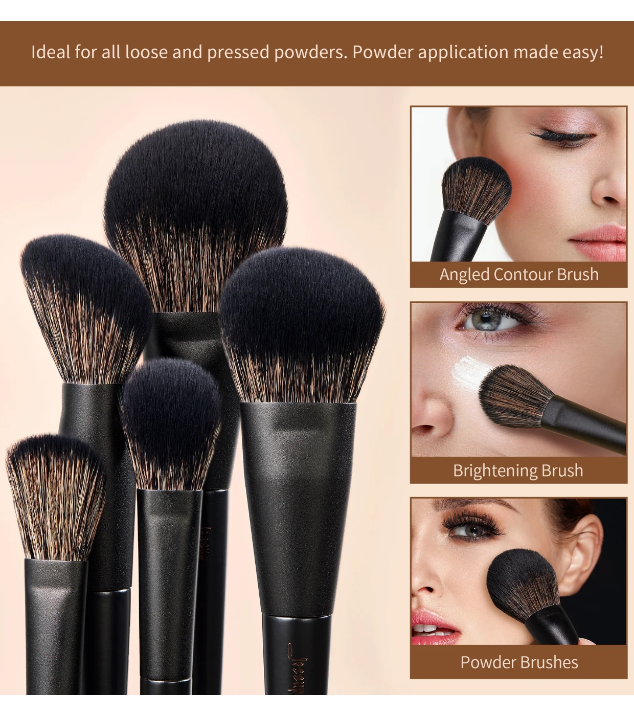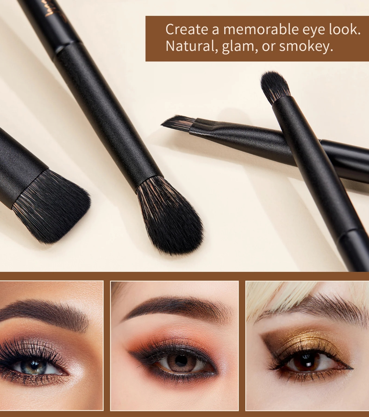 Perfeitos para quem busca um conjunto completo e minimalista, esses pincéis permitem que você crie tudo, desde acabamentos de pele radiantes até looks de olhos definidos e criativos, sem esforço.