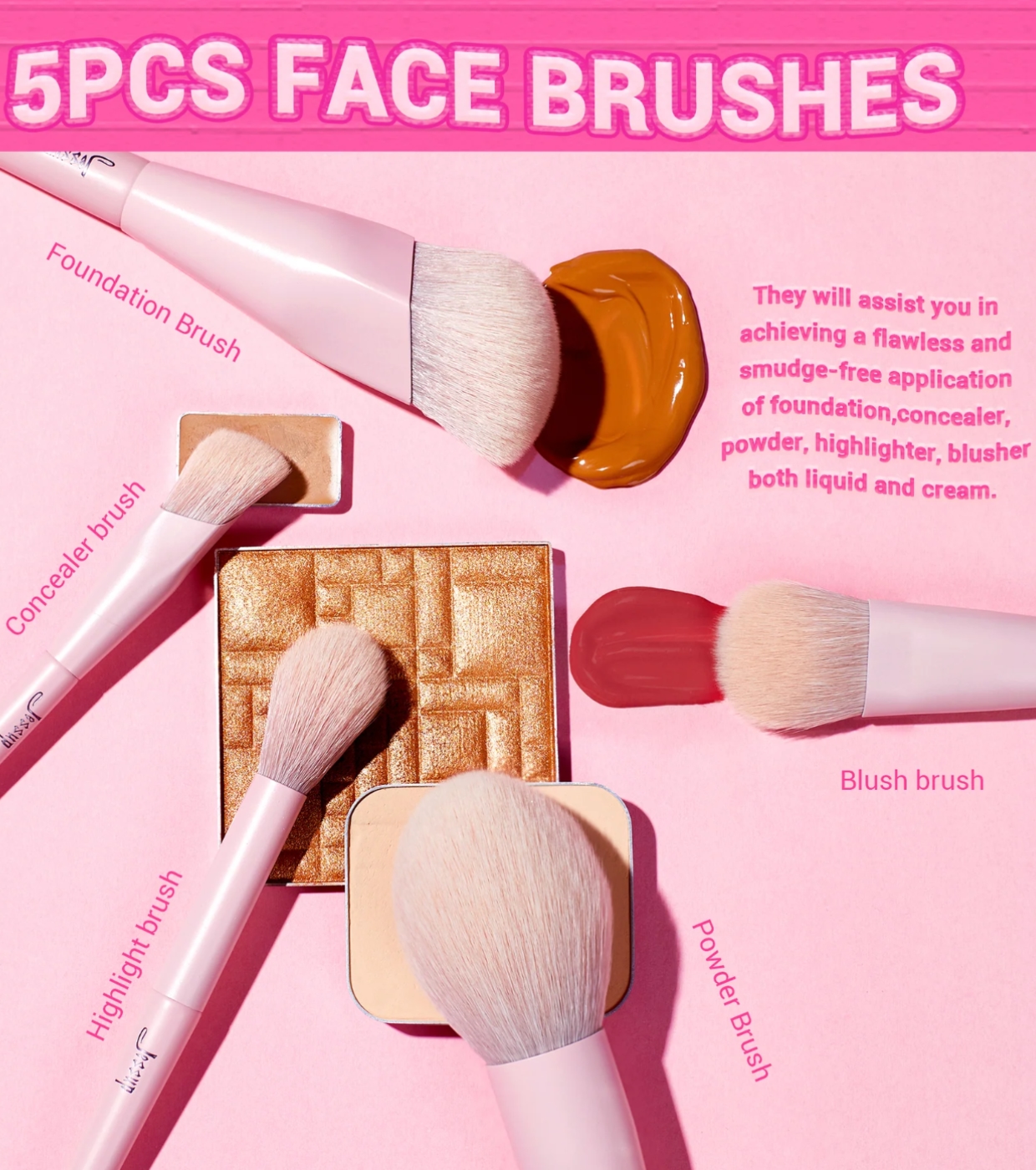 Este conjunto rosa de alta qualidade inclui 5 pincéis para o rosto e 9 pincéis para os olhos, ideais para aplicar produtos em creme, pó ou líquidos sem deixar manchas ou resíduos. Além disso, ele vem em uma linda caixa rosa, perfeita para presentear.