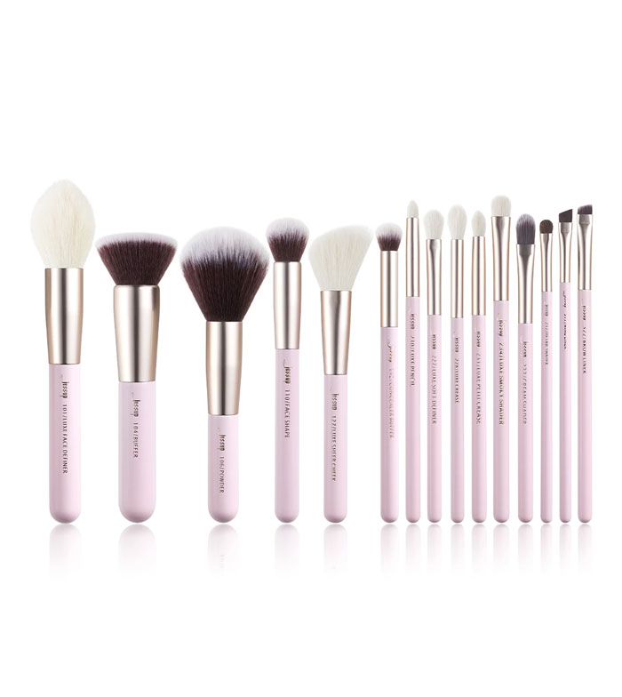Um conjunto de pincéis e pincéis na cor rosa ideal para iniciantes e profissionais.