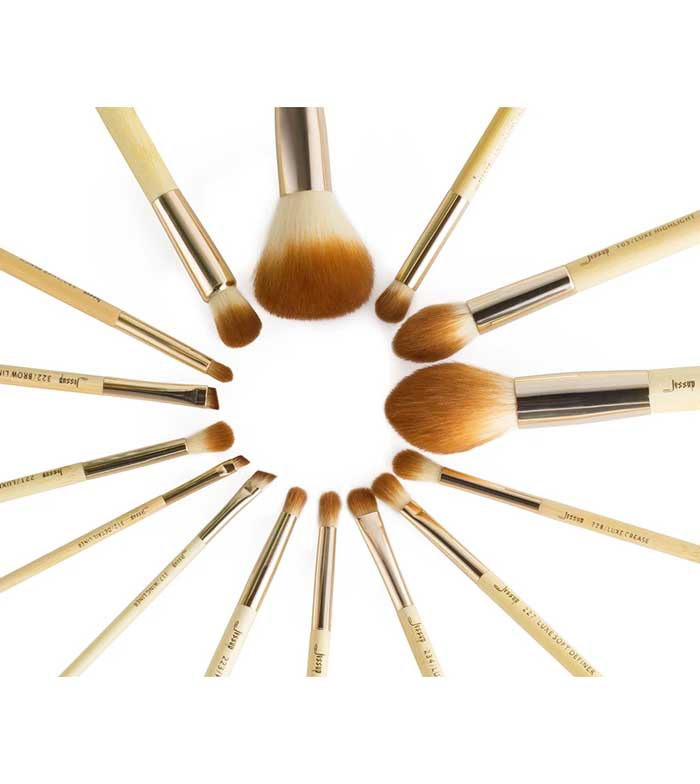 Projetado com cabo de bambu e cerdas de fibra sintética e nylon.