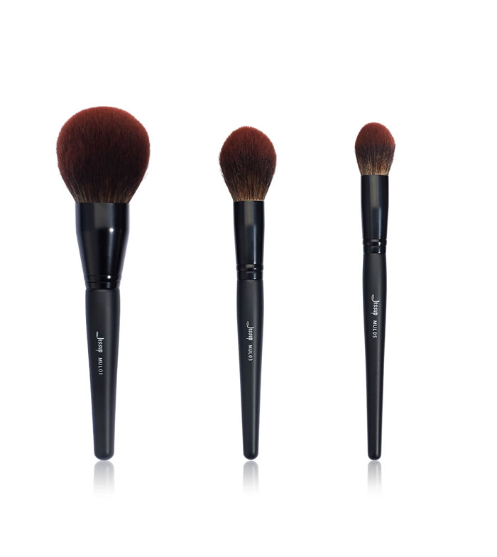 Conjunto de 3 pincéis para o rosto com um design elegante na cor preta.