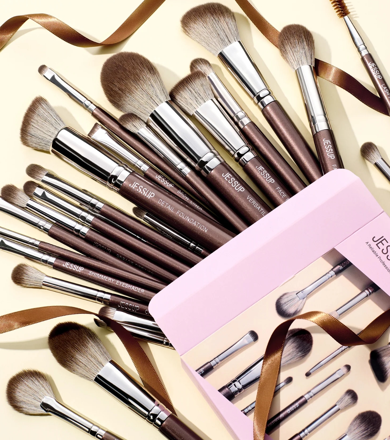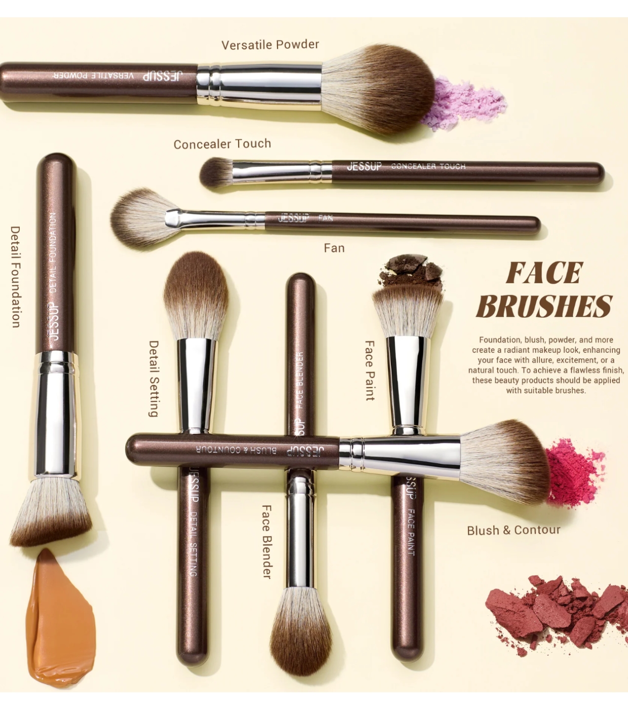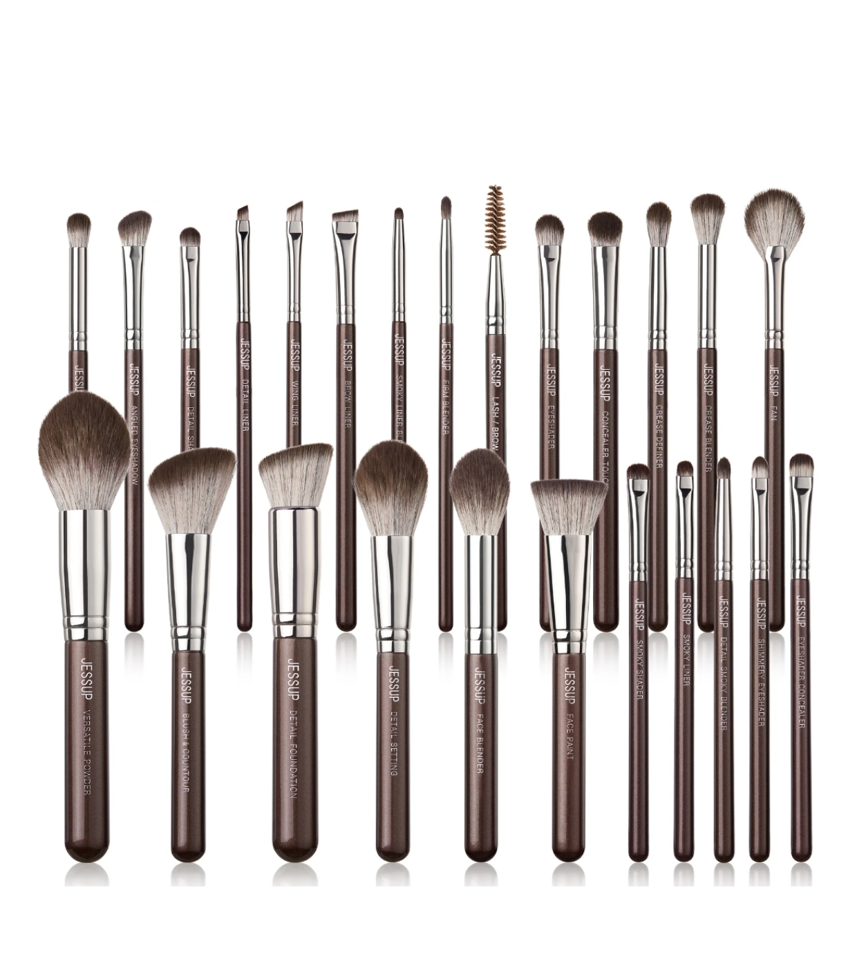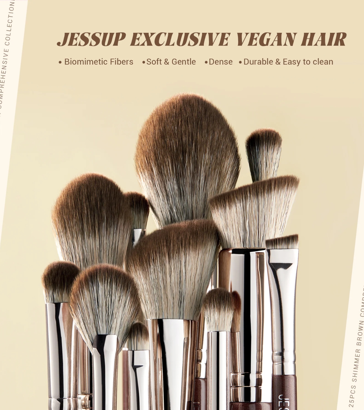 Leve sua maquiagem para o próximo nível com este conjunto de 25 pincéis Shimmer Brown da Jessup Beauty , projetado para oferecer cobertura completa, da base aos retoques finais.