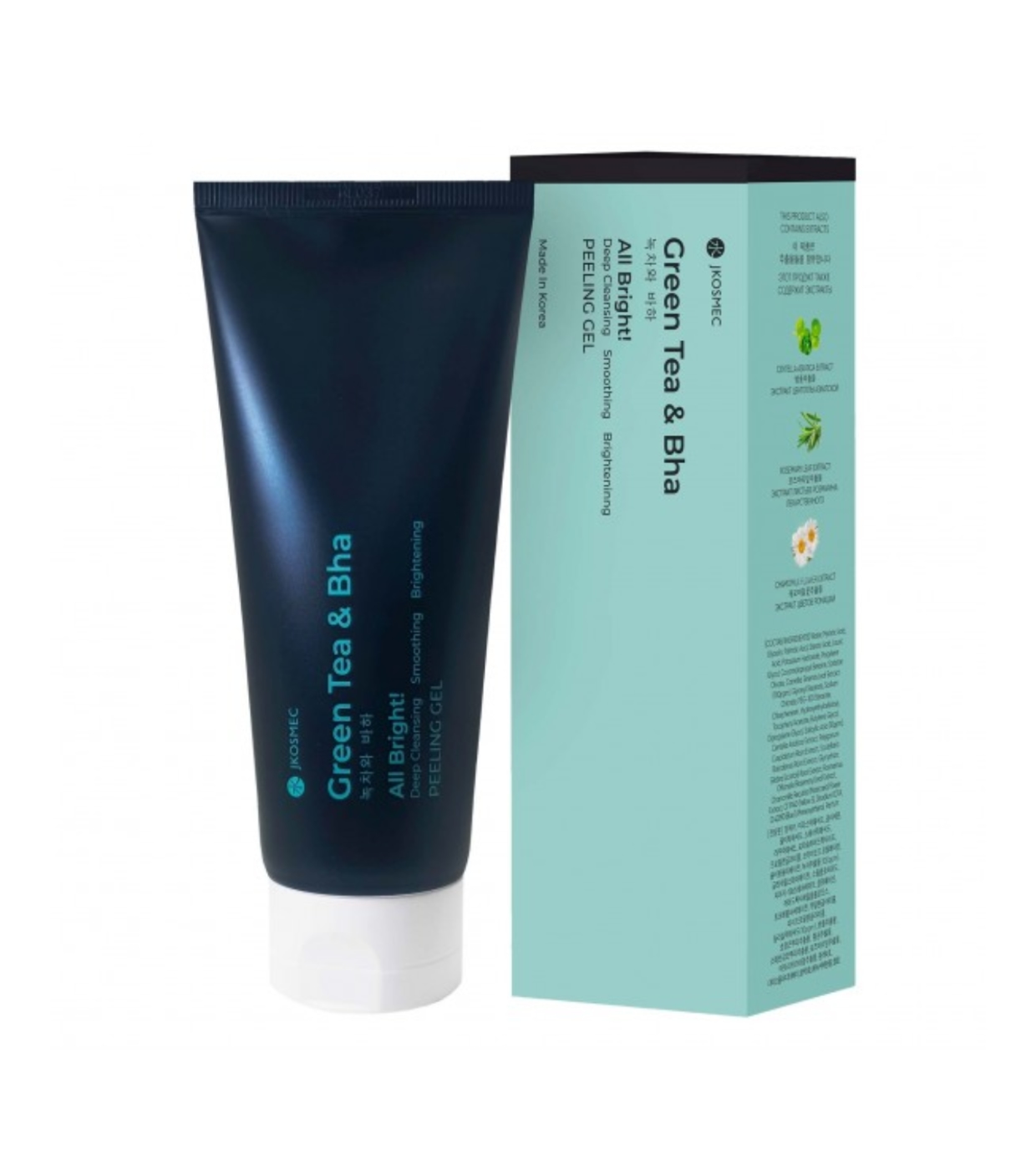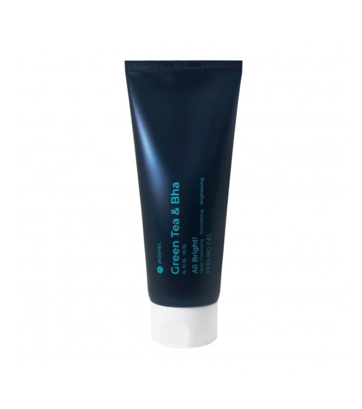 Este gel esfoliante facial All Bright com BHA e extrato de chá verde da Jkosmec é suave e desenvolvido para peles com poros obstruídos, textura irregular ou propensas ao acúmulo de células mortas.