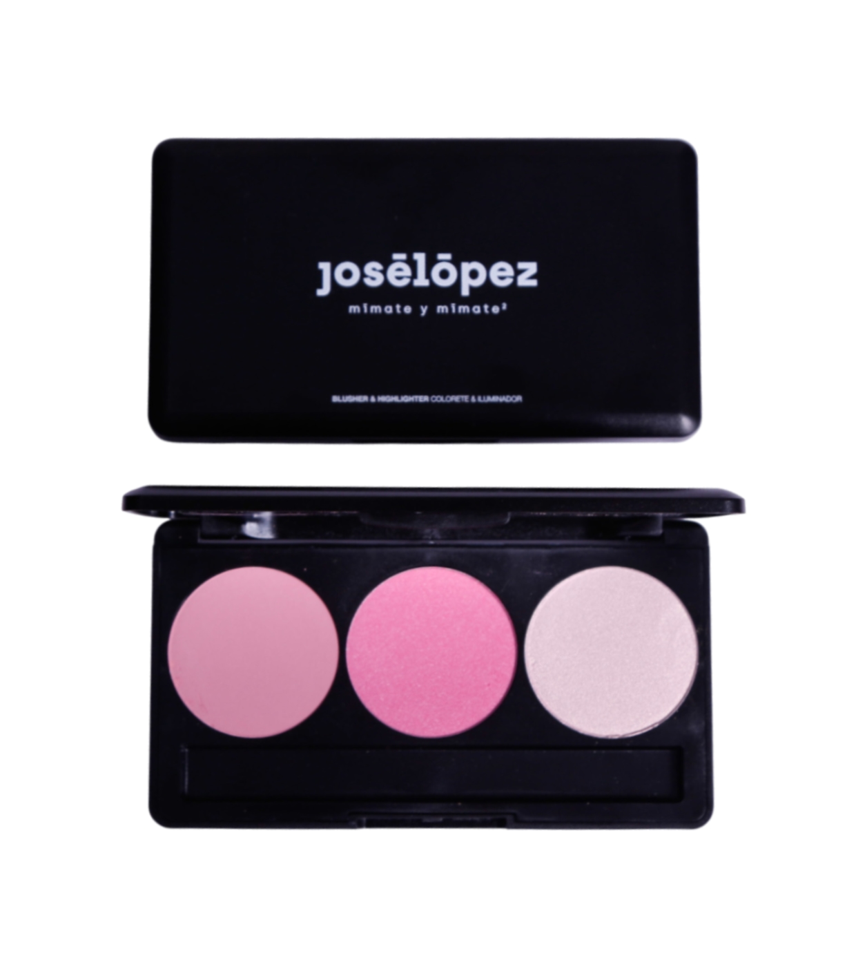 Esta paleta facial de José López combina dois blushes frios altamente pigmentados com um iluminador ultrafino que se mistura com a pele, proporcionando frescor sem destacar as linhas de expressão.