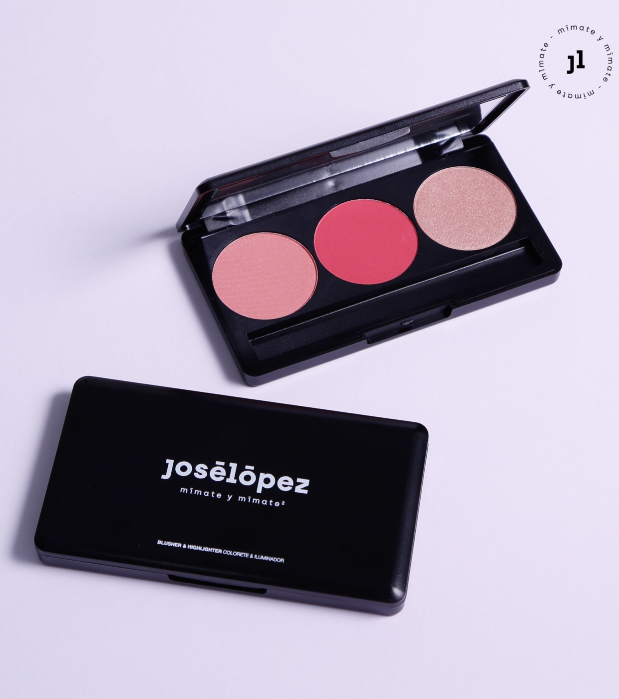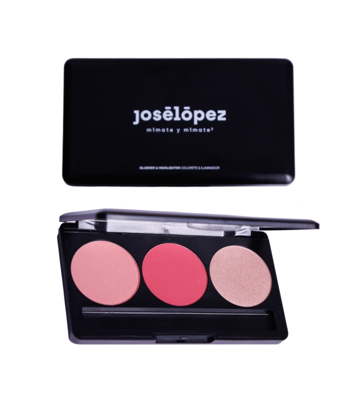 Esta paleta facial de José López combina dois blushes quentes altamente pigmentados em tons de damasco e coral, com um iluminador cremoso e ultrafino que proporciona um brilho natural sem criar linhas finas.