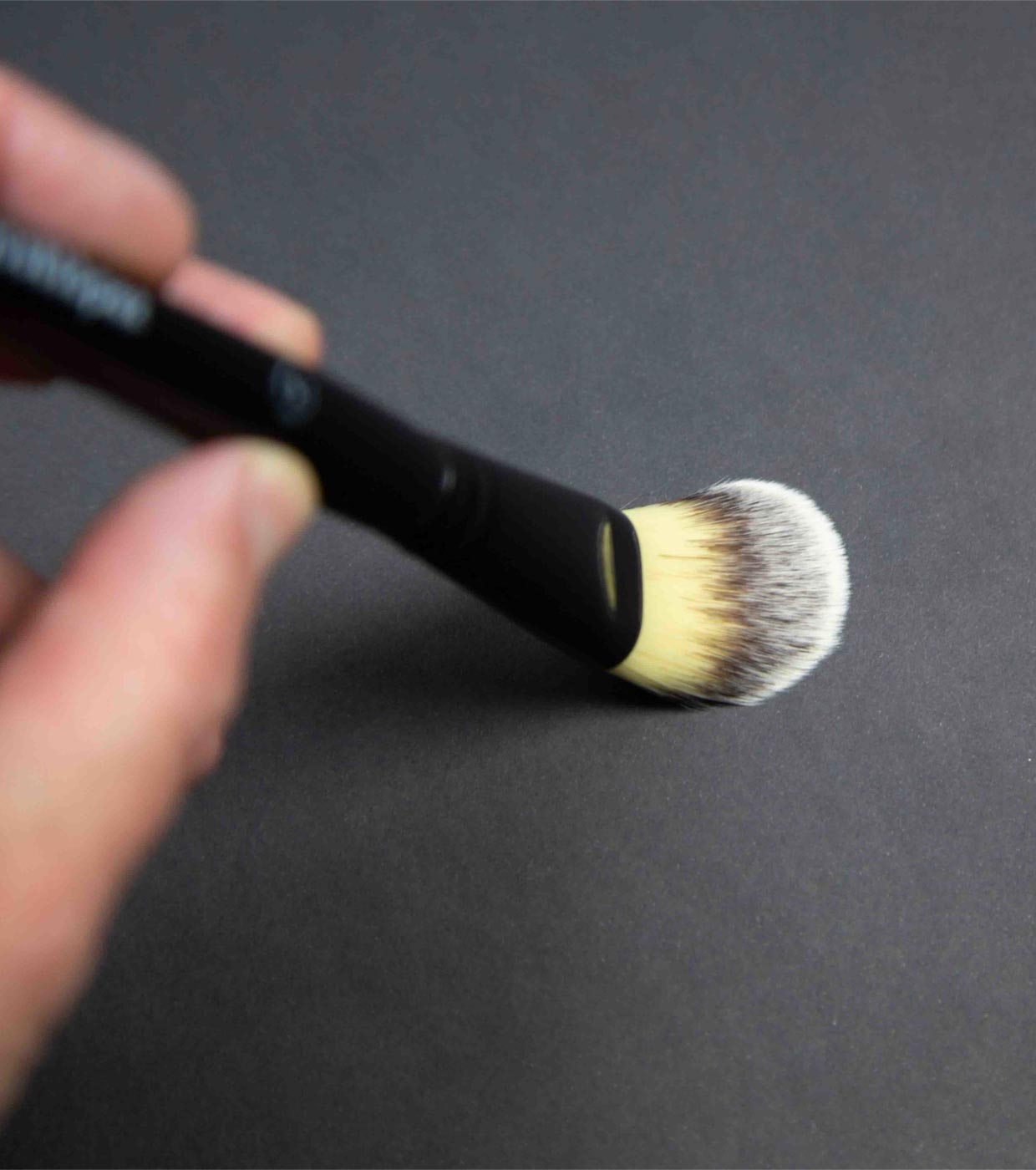 Feito de cabelo sintético oleoso que ajuda a aplicar base fluida e qualquer creme hidratante.