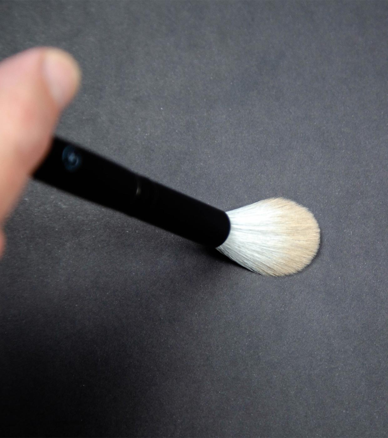Este pincel arredondado com cabelo comprido facilita a aplicação do pó iluminador.