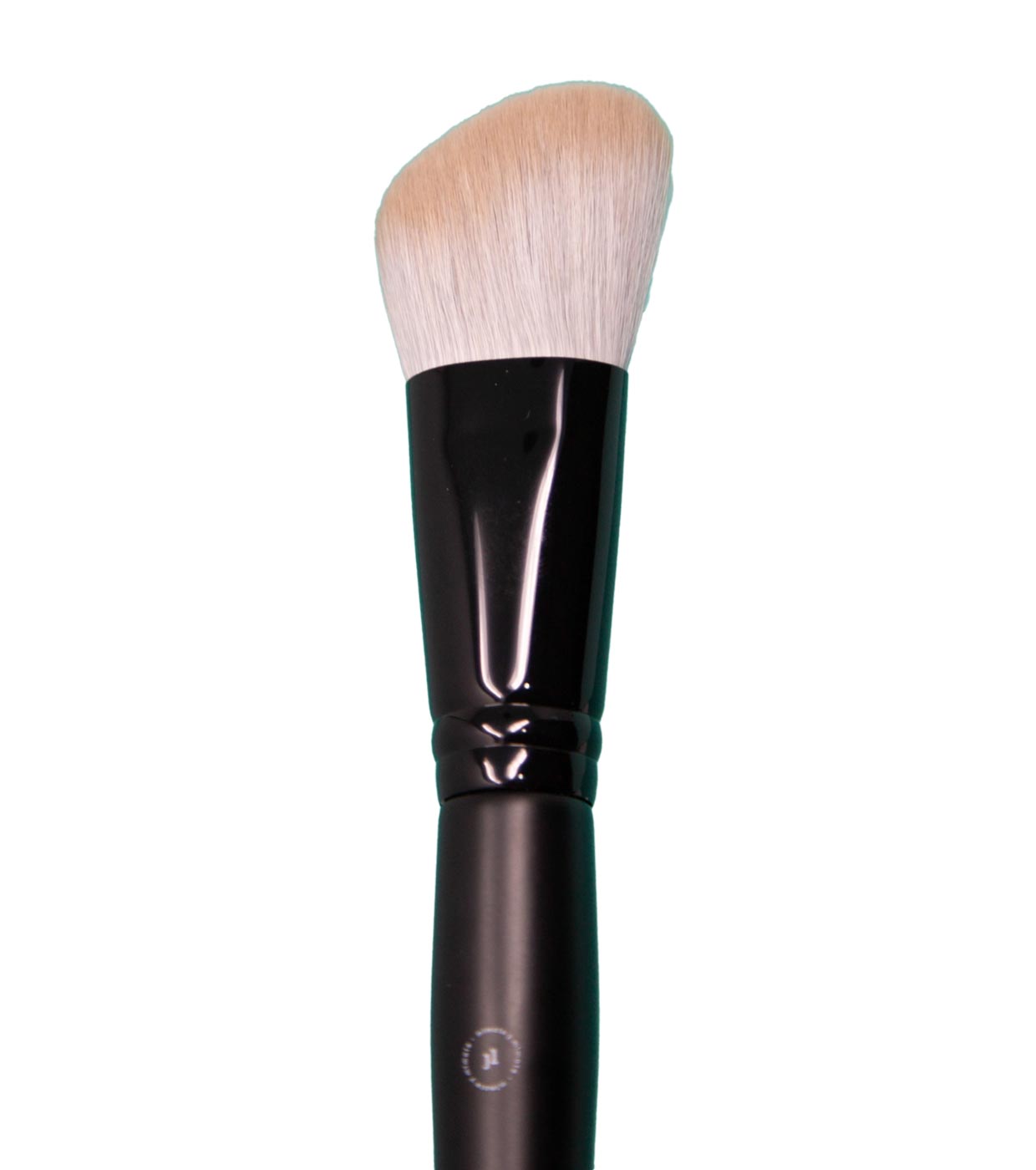 Este pincel angular permite aplicar perfeitamente o pó bronzeador sob a maçã do rosto.