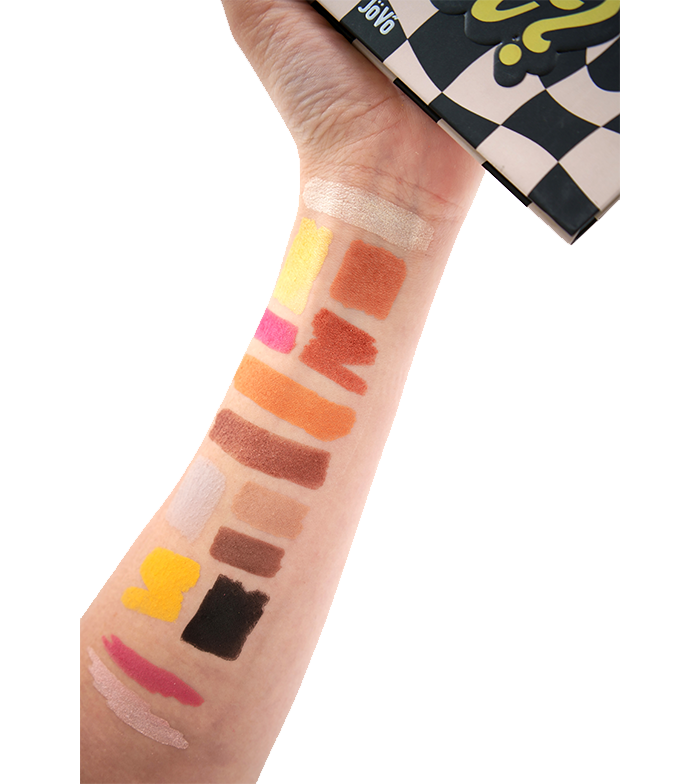 Esta paleta de sombras vem com um conjunto de adesivos de rosto para você brincar e criar.