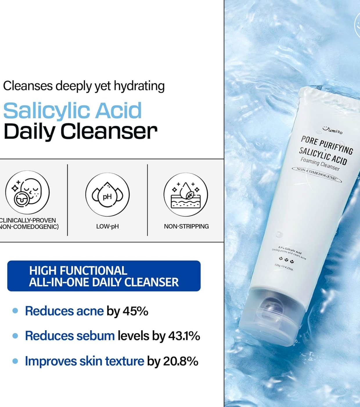 Pore-Purifying Salicylic Acid Foaming Cleanser O limpador espumante com ácido salicílico purificador de poros é um limpador de baixo pH que esfolia suavemente e hidrata a pele com ácido salicílico e extrato de maçã para uma pele mais lisa.