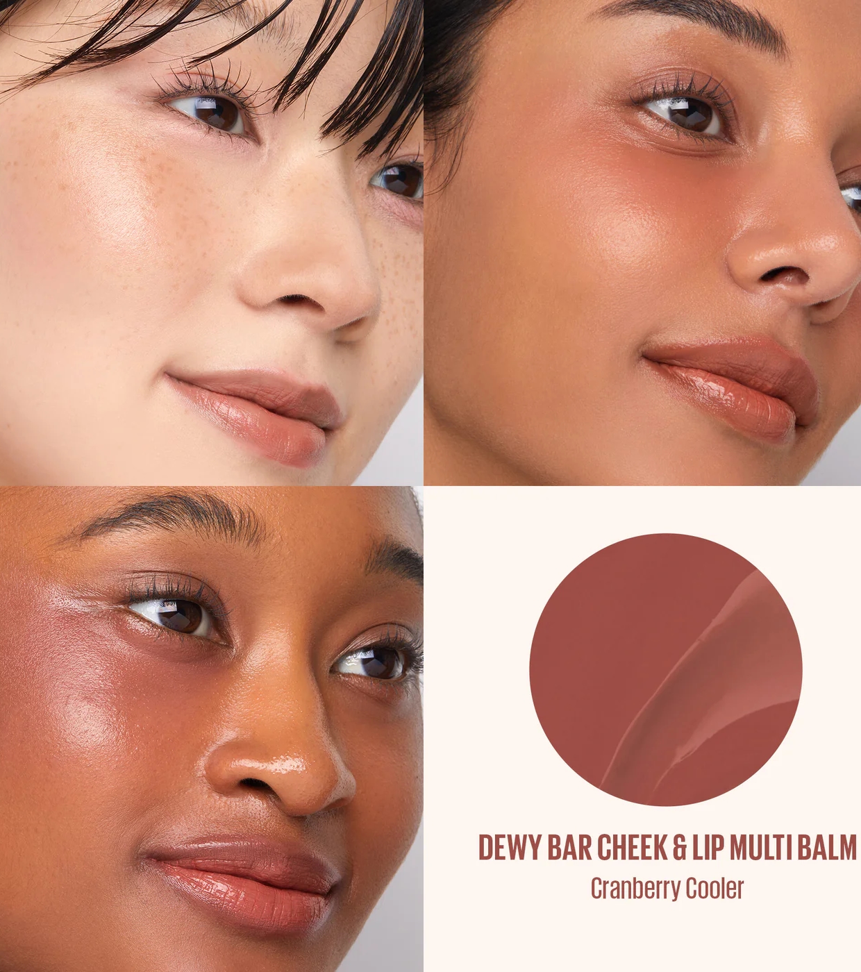Dewy Bar é um protetor labial e bochechas leve e construível que revela um brilho natural e radiante.