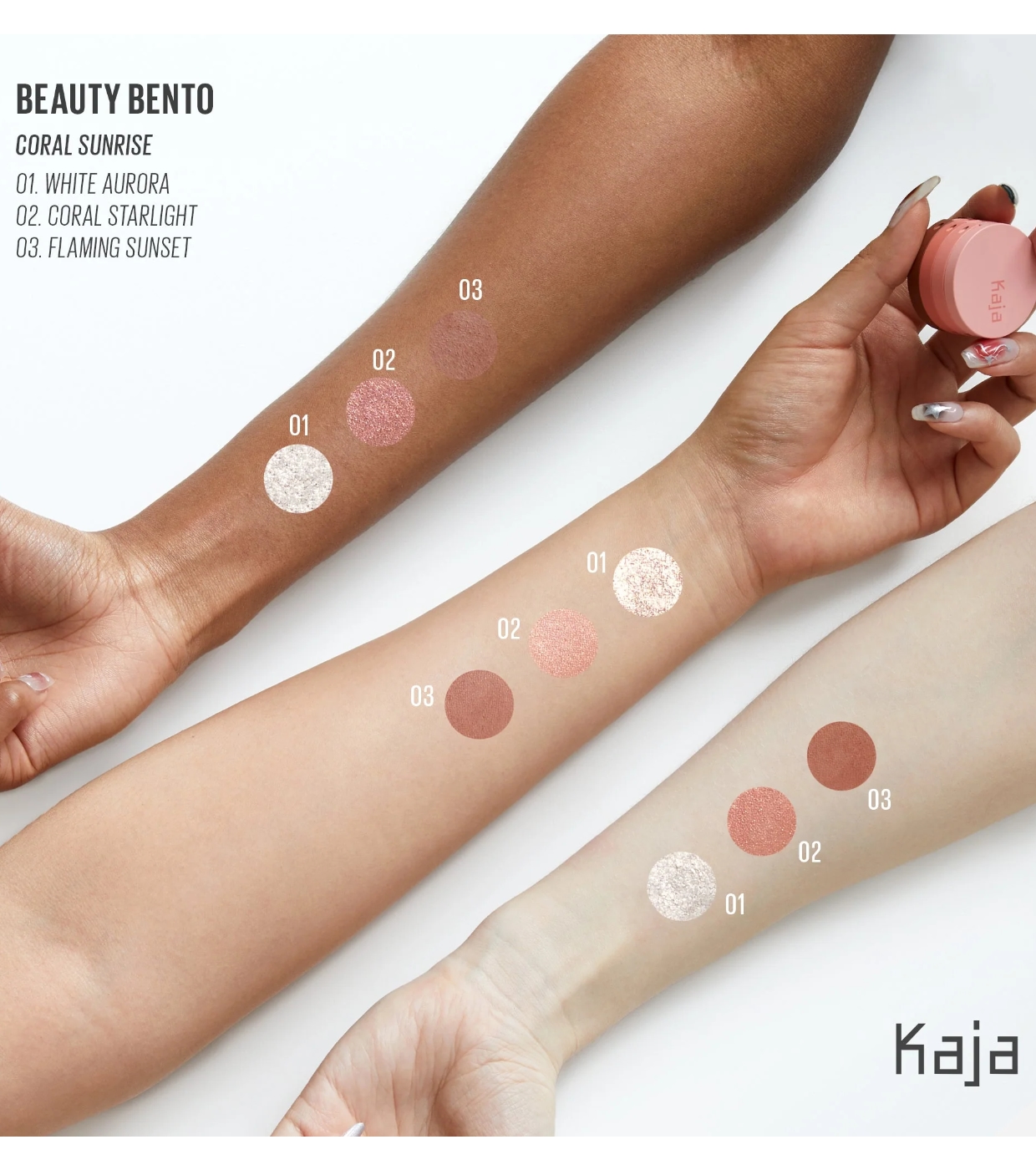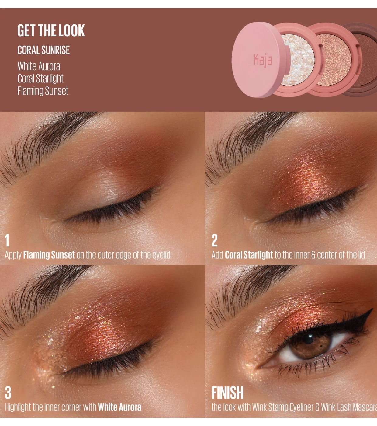 Kaja Kaja A sombra 3 em 1 é um trio de sombras em pó cremosas que combinam textura sedosa e alta pigmentação, permitindo que você crie looks naturais ou marcantes com apenas um produto.