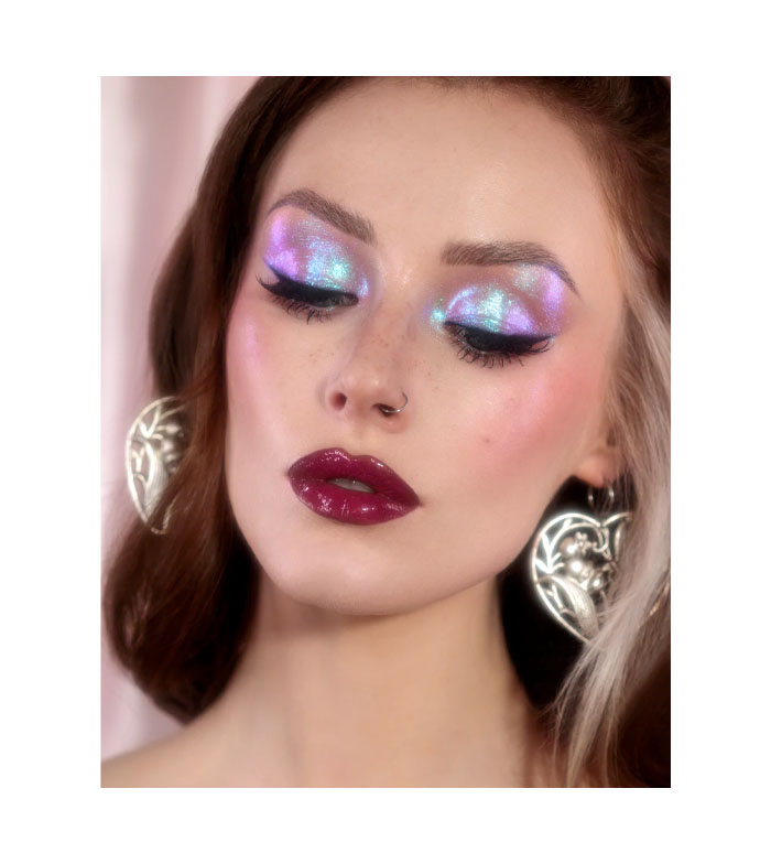 Camada sobre uma base de sombra colorida para criar um toque de brilho puro e luminoso, ou você pode criar um acabamento opaco, se desejar.