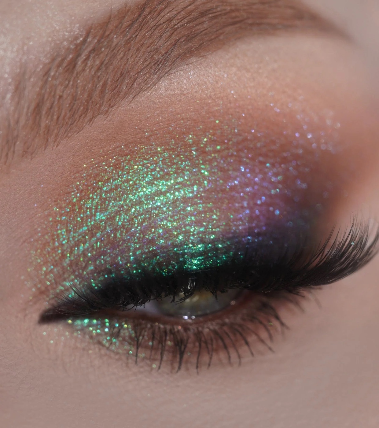 Esta sombra prismática é enriquecida com pigmentos híbridos líquidos e em pó que mudam de cor para criar uma textura suave e ultrafina que desliza sem esforço sobre a pele, criando looks fascinantes e brilhantes como o arco-íris com apenas um toque do seu dedo.