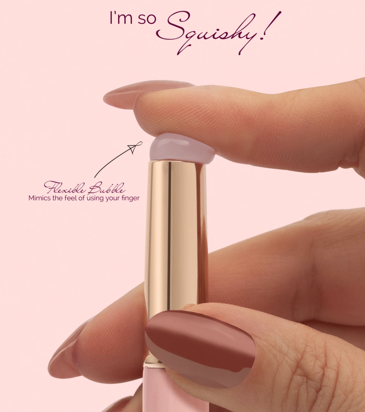 - Suave, mas eficaz: o aplicador de bolhas de silicone macio oferece um toque suave que permite aplicar a cor gradualmente, espalhá-la facilmente e criar um acabamento impecável.