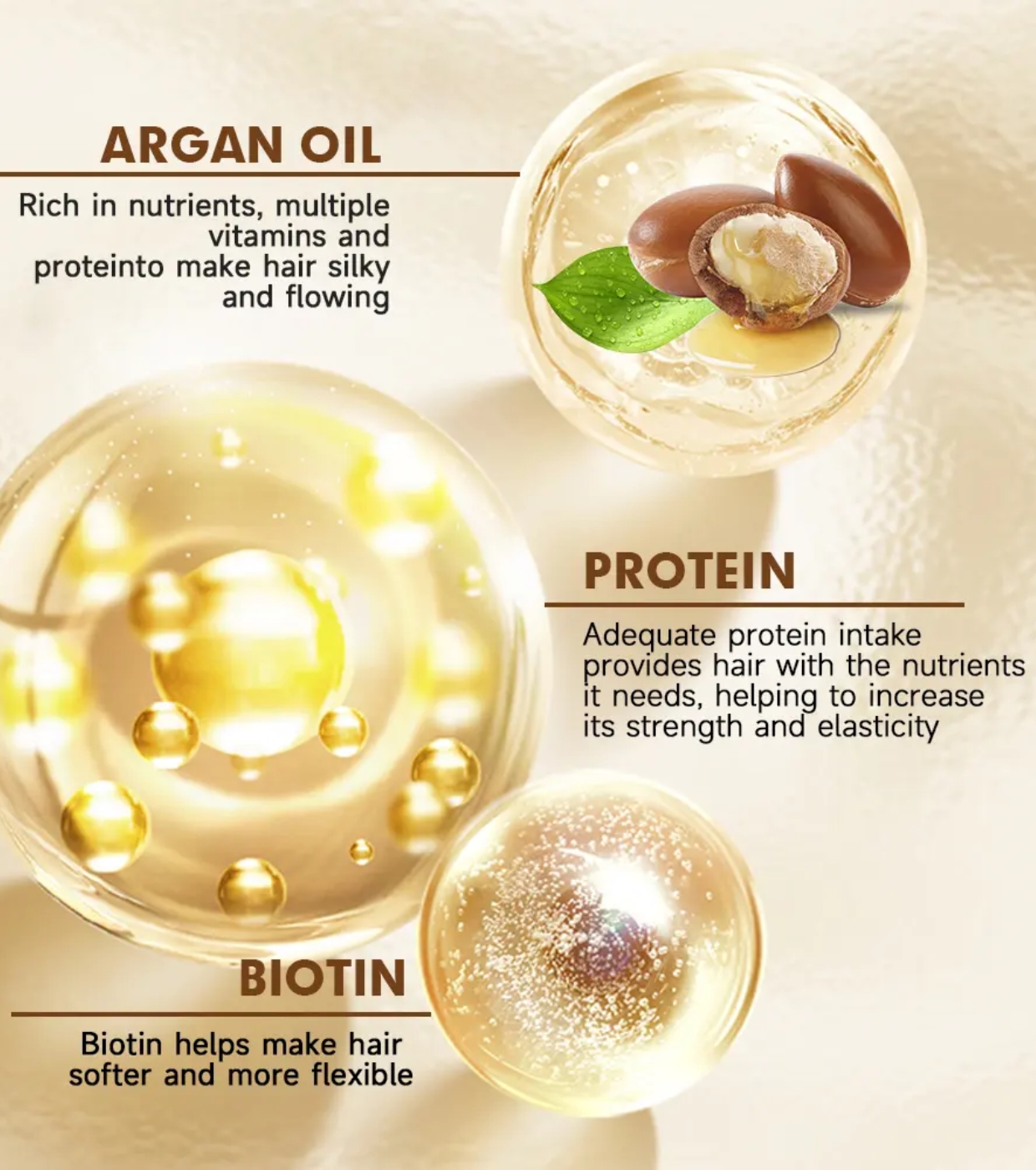 Graças à sua combinação de óleo de argan, queratina e óleos naturais, ele repara a fibra capilar de dentro para fora, controla o frizz e proporciona brilho intenso sem pesar nos cabelos.