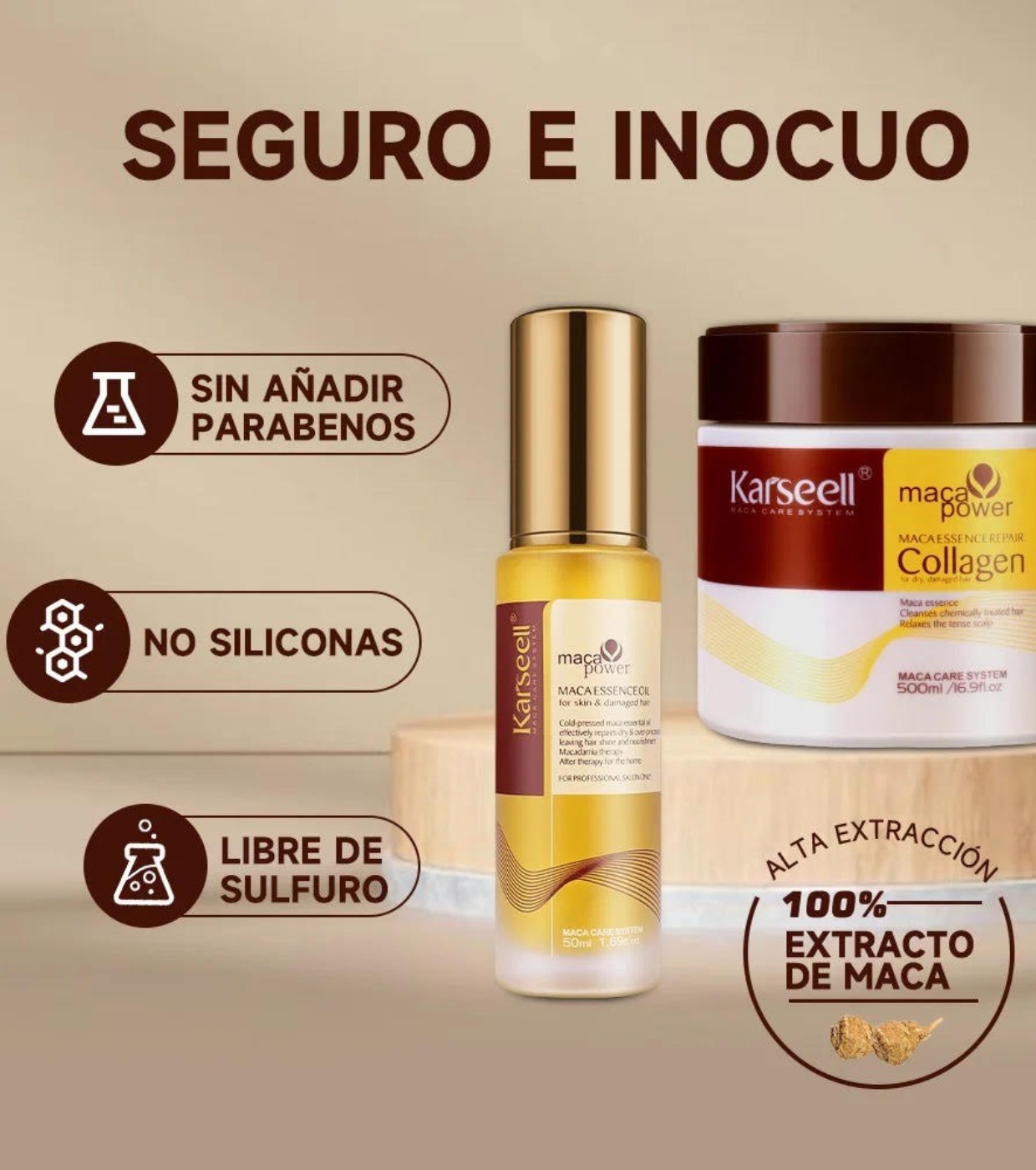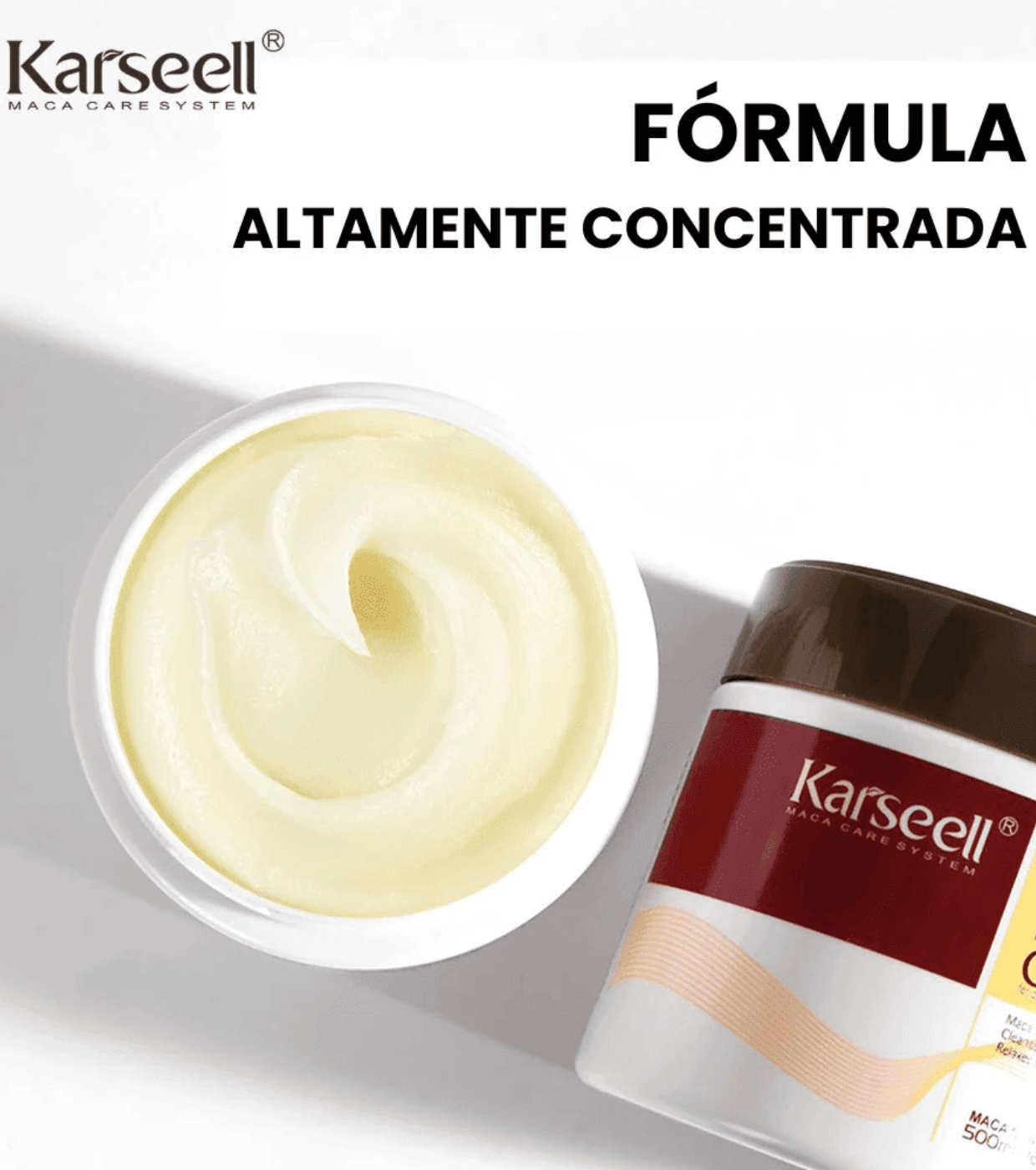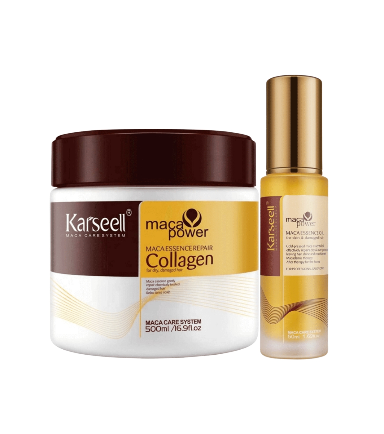 Descubra a combinação perfeita de cuidado completo e resultados visíveis com o conjunto Maca Power da Karseell , composto por uma máscara capilar de 500 ml e um sérum multifuncional de 50 ml.
