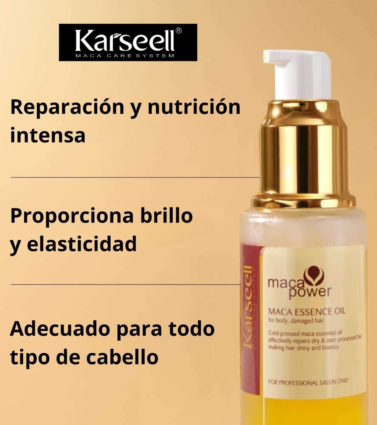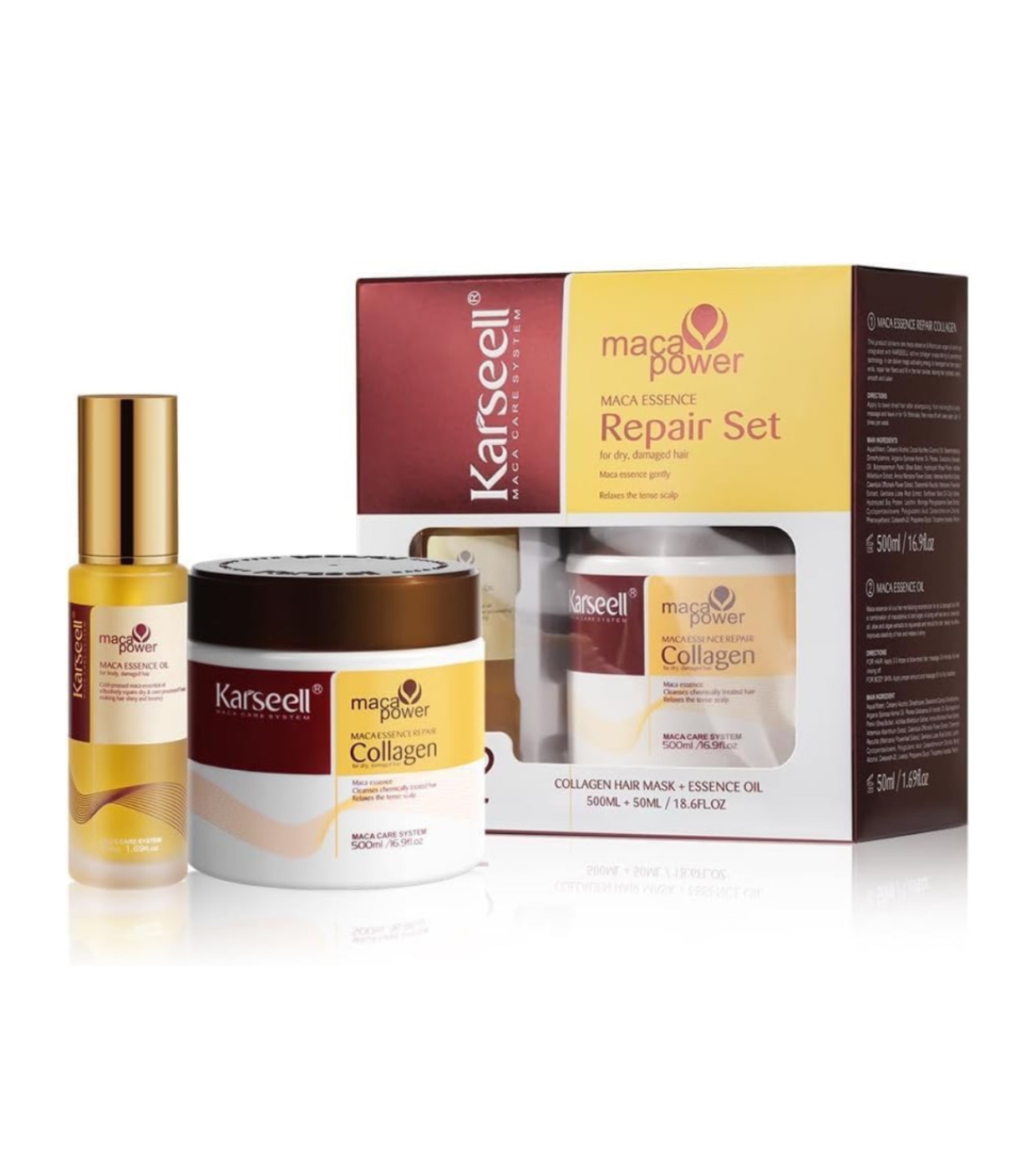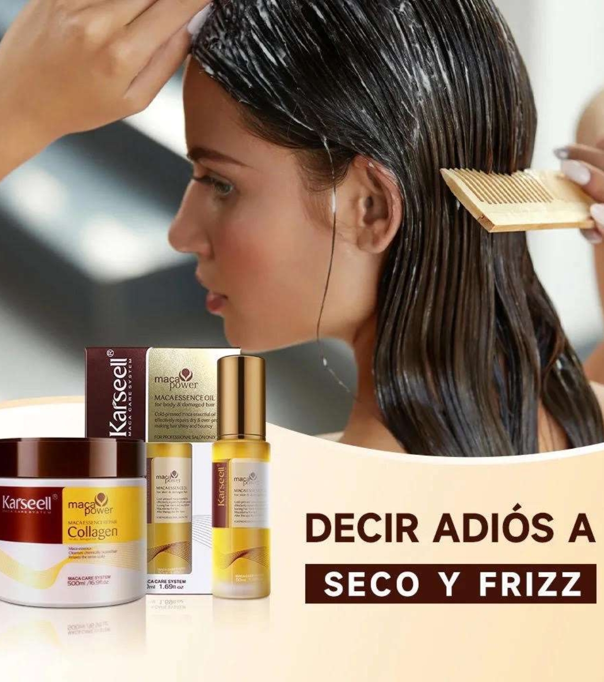 Descubra a combinação perfeita de cuidado completo e resultados visíveis com o conjunto Maca Power da Karseell , composto por uma máscara capilar de 500 ml e um sérum multifuncional de 50 ml.