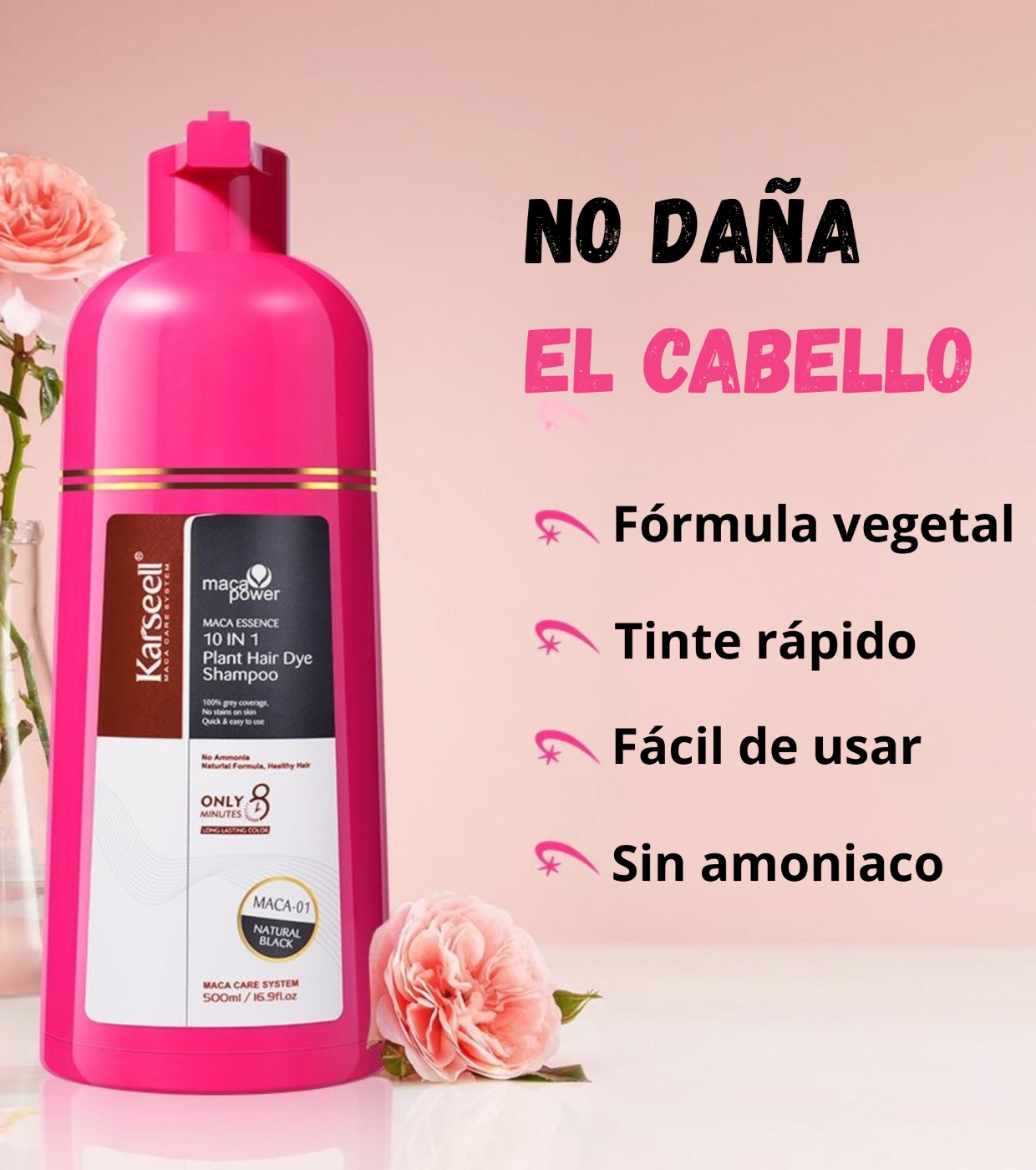 - Cobre instantaneamente os cabelos grisalhos com um tom preto natural.