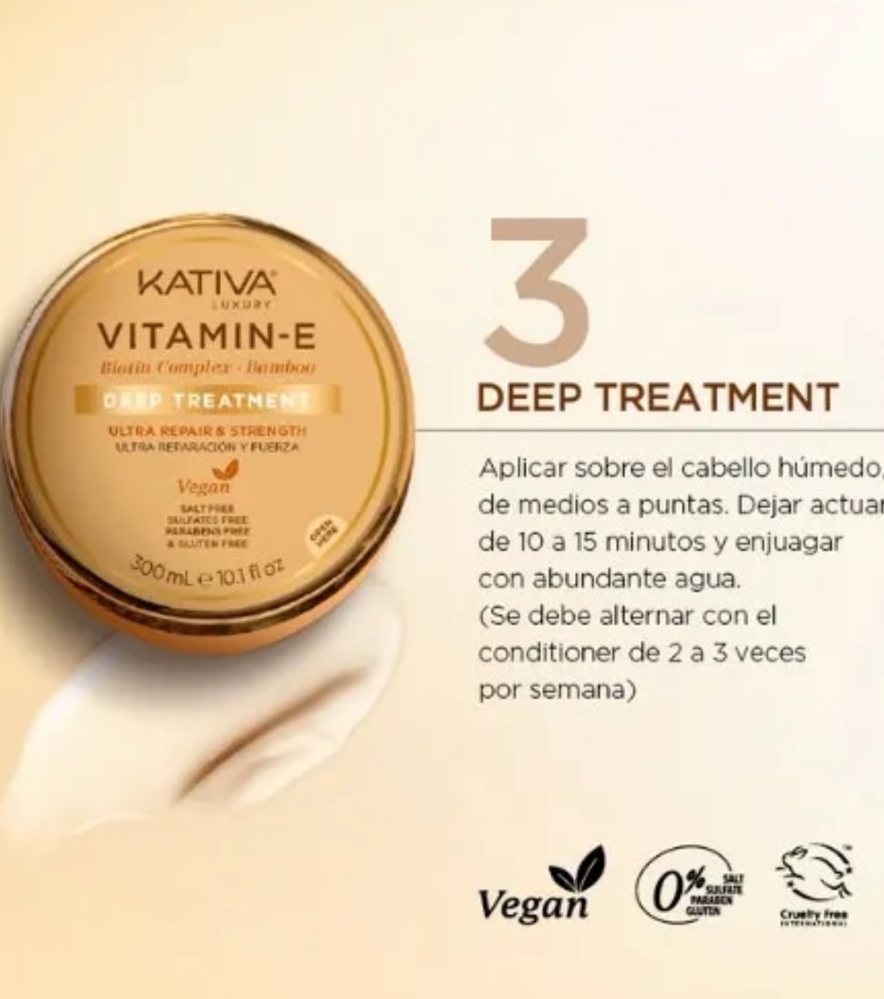 A máscara da Kativa , com vitamina E, complexo de biotina e bambu, foi formulada para reparar, fortalecer e proteger os cabelos contra os efeitos do tempo, do estresse e da exposição solar, fatores que causam a perda de vitalidade e brilho.