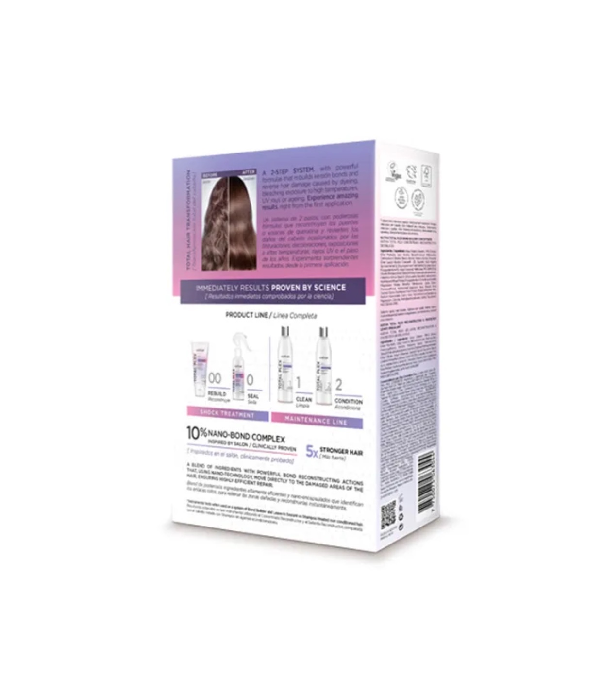 Sua fórmula é aprimorada com 10% de NANO-BOND COMPLEX, uma combinação inovadora de ingredientes nanoencapsulados que identificam as ligações quebradas, preenchem as áreas danificadas e reconstroem imediatamente a fibra capilar.