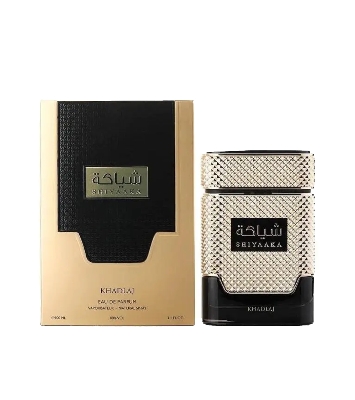 Shiyaaka Gold, um eau de parfum luxuoso e cativante que incorpora a essência da elegância e opulência.