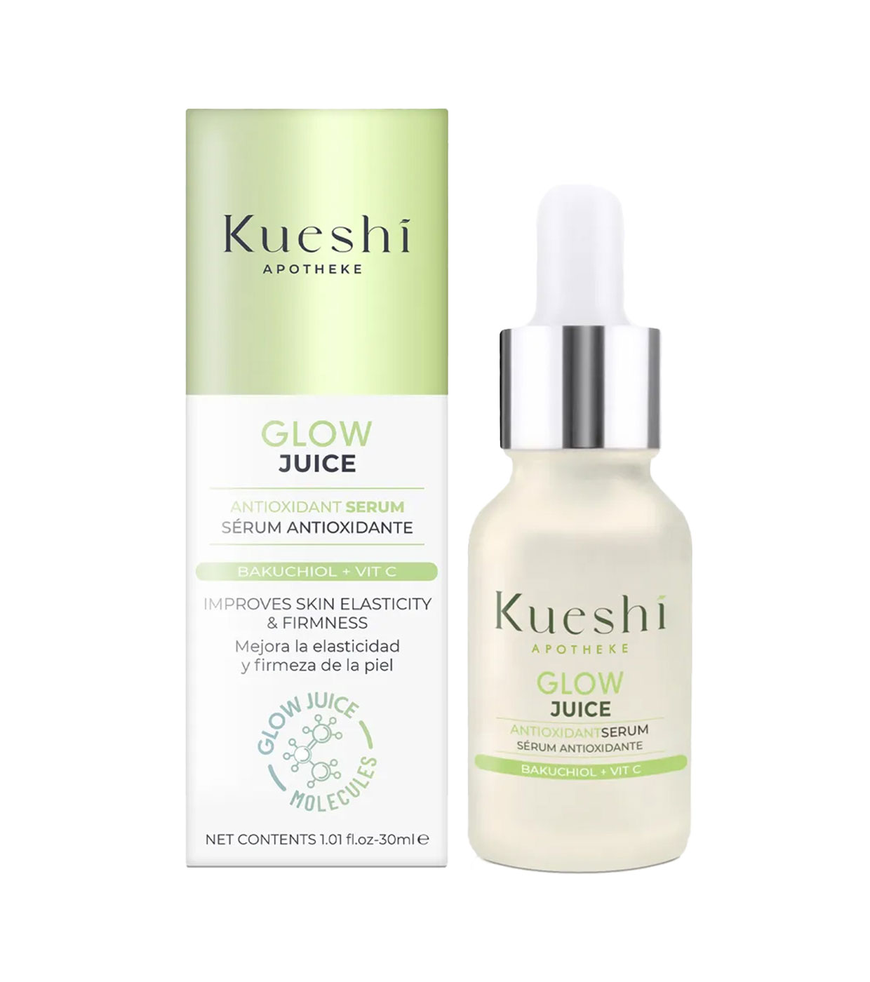 O Sérum Facial Antioxidante Bakuchiol + Vitamina C Glow Juice oferece poderosa proteção contra agressões externas graças à sua combinação de Bakuchiol, uma alternativa vegana ao retinol ideal para peles sensíveis por sua falta de irritação, e Vitamina C.