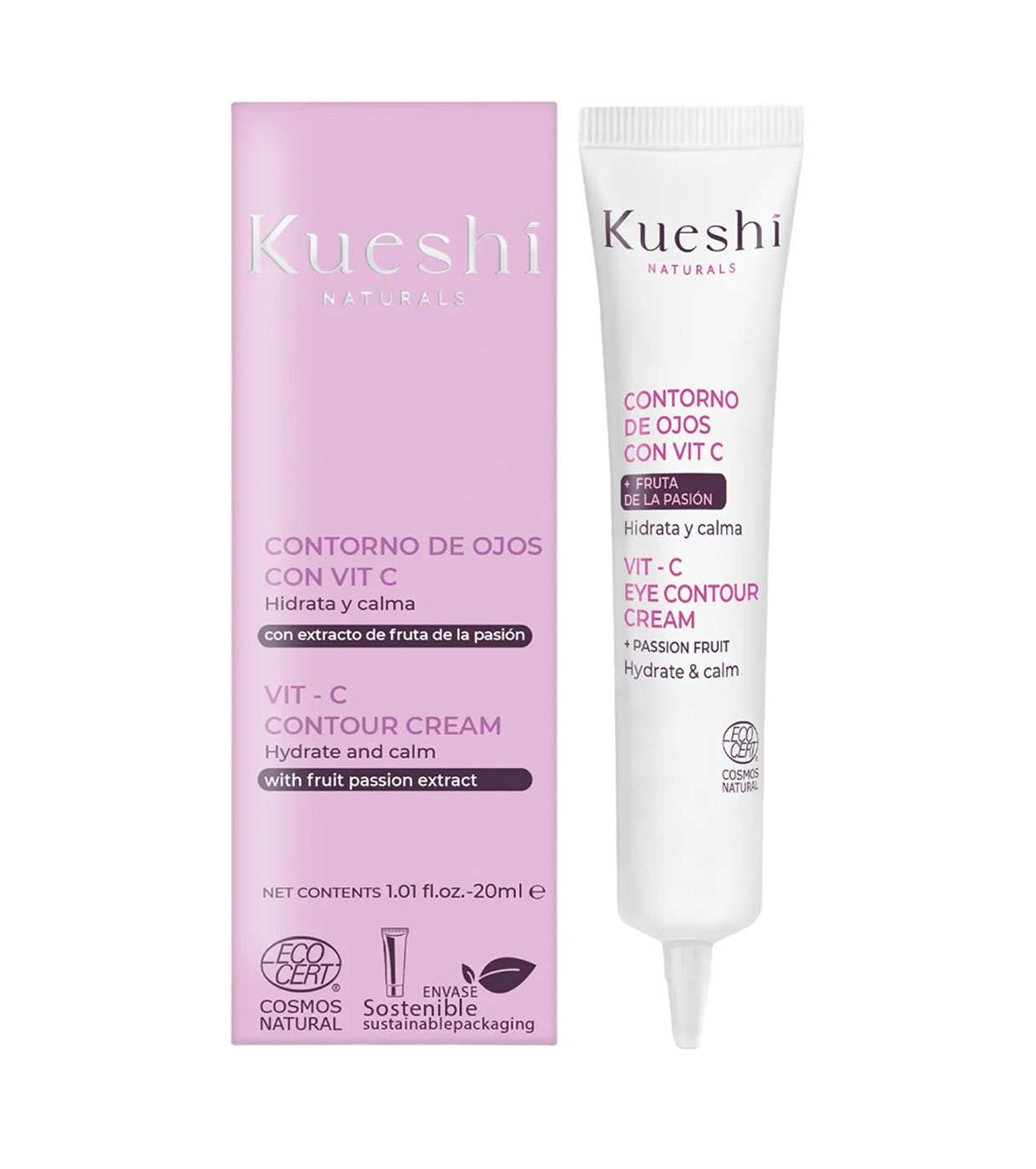 Experimente hidratação e calma com o Contorno de Olhos com Vitamina C da Kueshi, uma fórmula enriquecida com extrato de aveia e calêndula desenvolvida para peles sensíveis.