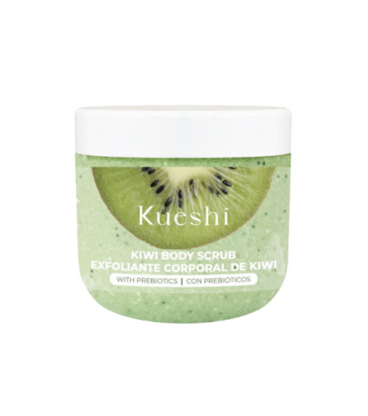O esfoliante corporal de kiwi da Kueshi limpa e renova a pele, ajudando a manter o equilíbrio natural da microbiota cutânea.