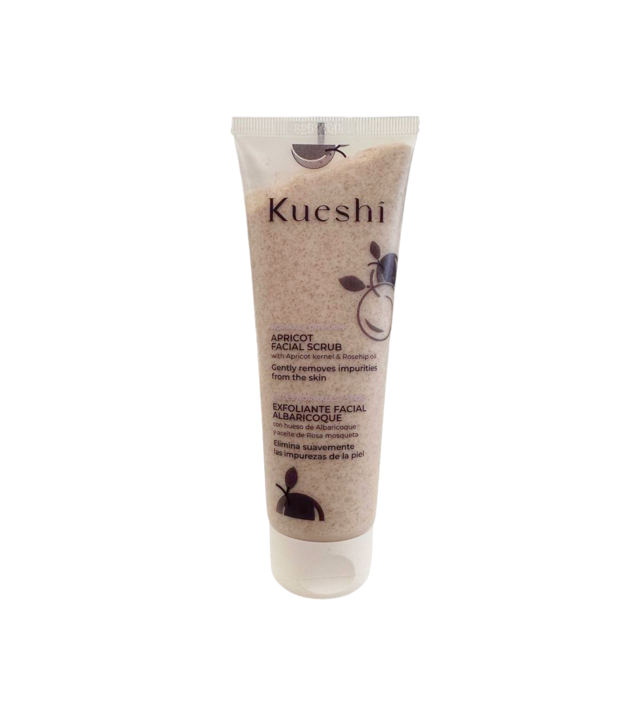 O esfoliante facial de damasco da Kueshi remove suavemente as células mortas e impurezas da pele, deixando-a limpa, macia e radiante.
