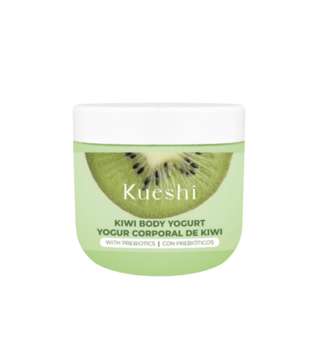 O iogurte corporal de kiwi com prebióticos da Kueshi combina uma textura leve e refrescante com uma fórmula desenvolvida para hidratar profundamente e manter o equilíbrio natural da pele.