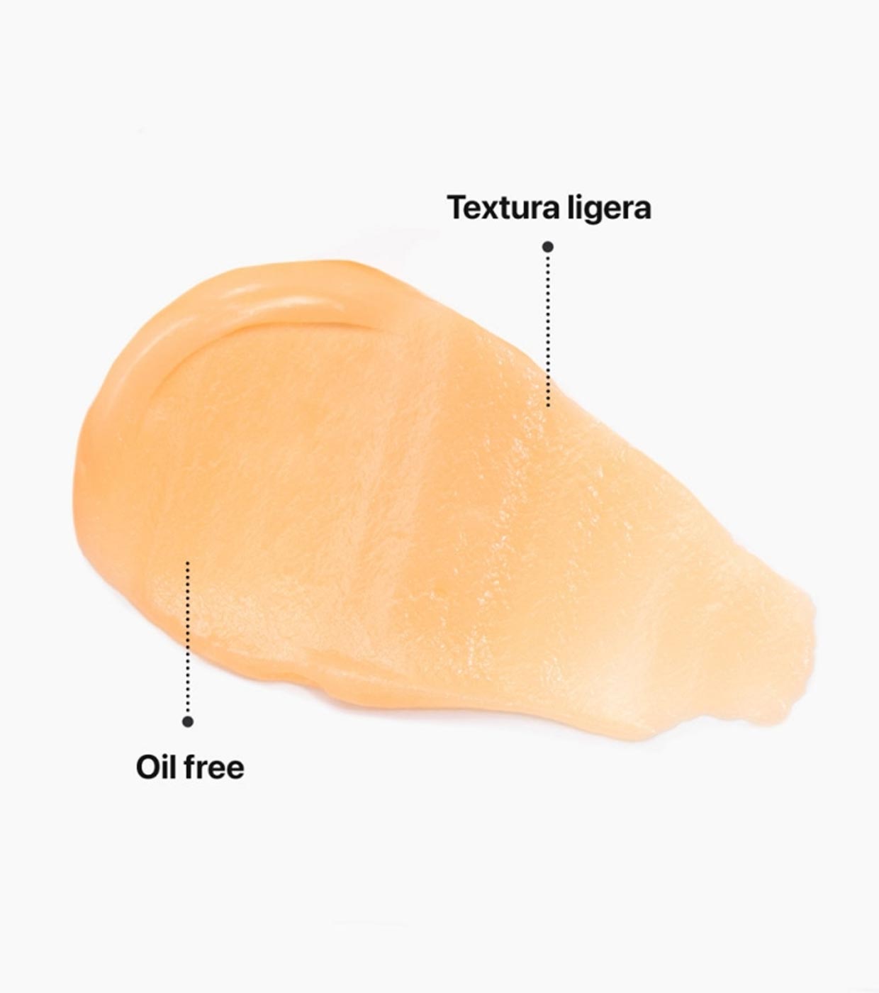Uma fórmula única com vitamina C encapsulada, proteoglicanos e glicopolímeros e textura livre de óleo.