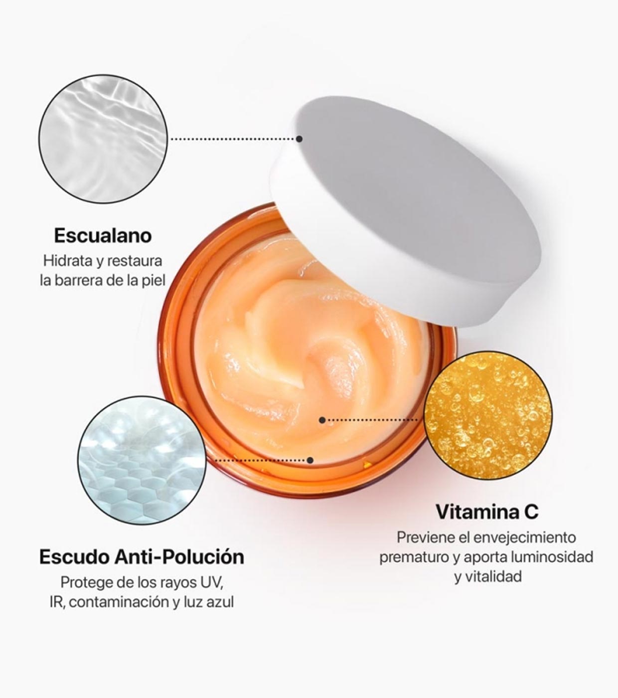 Creme iluminador com Vitamina C para uma pele mais luminosa, hidratada e jovem.