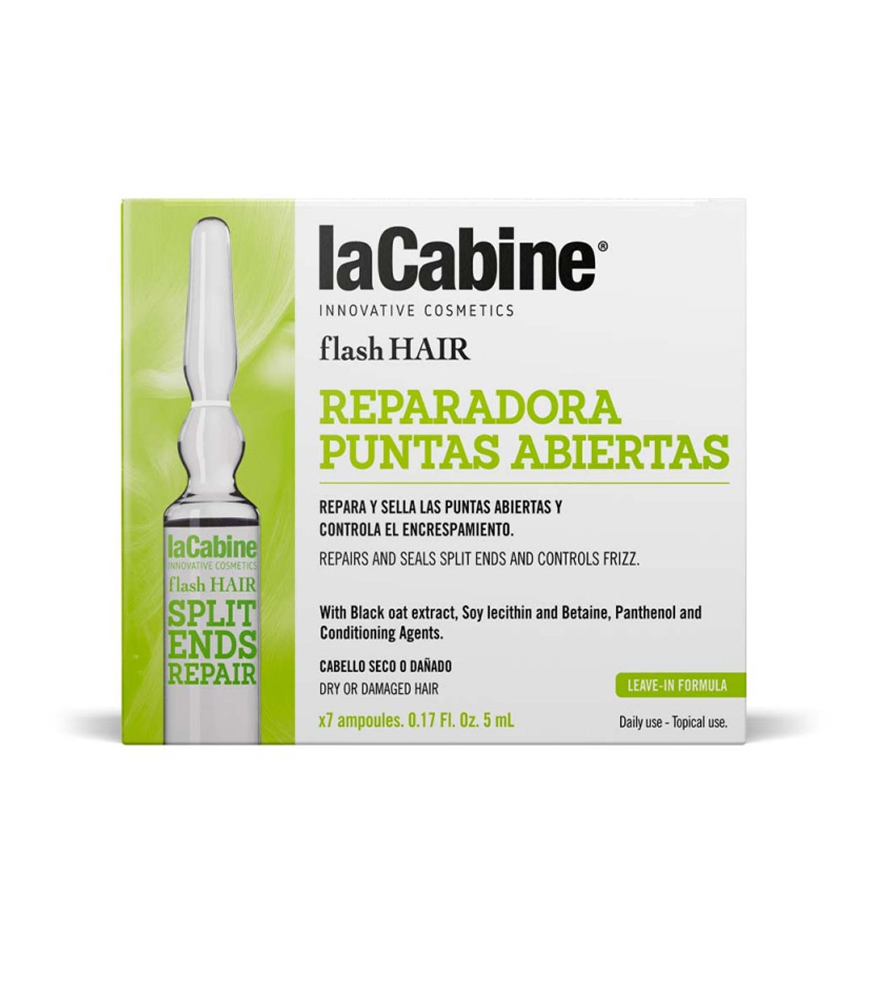 La Cabine ampolas reparadoras de pontas duplas para cabelos secos ou danificados.