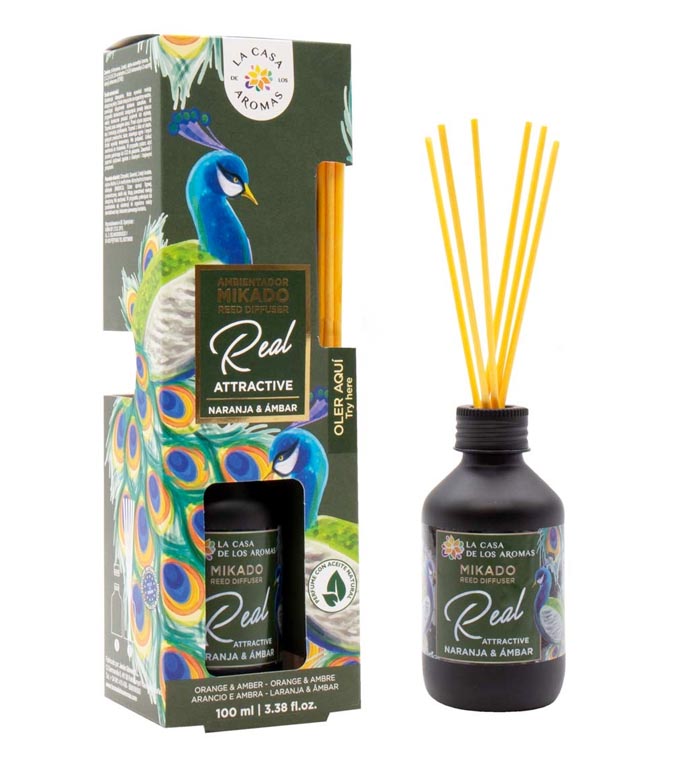 Real Attractive ambientador de mikado de La Casa de los Aromas que ajuda a eliminar os maus odores e mantém a sua casa perfumada e protegida.