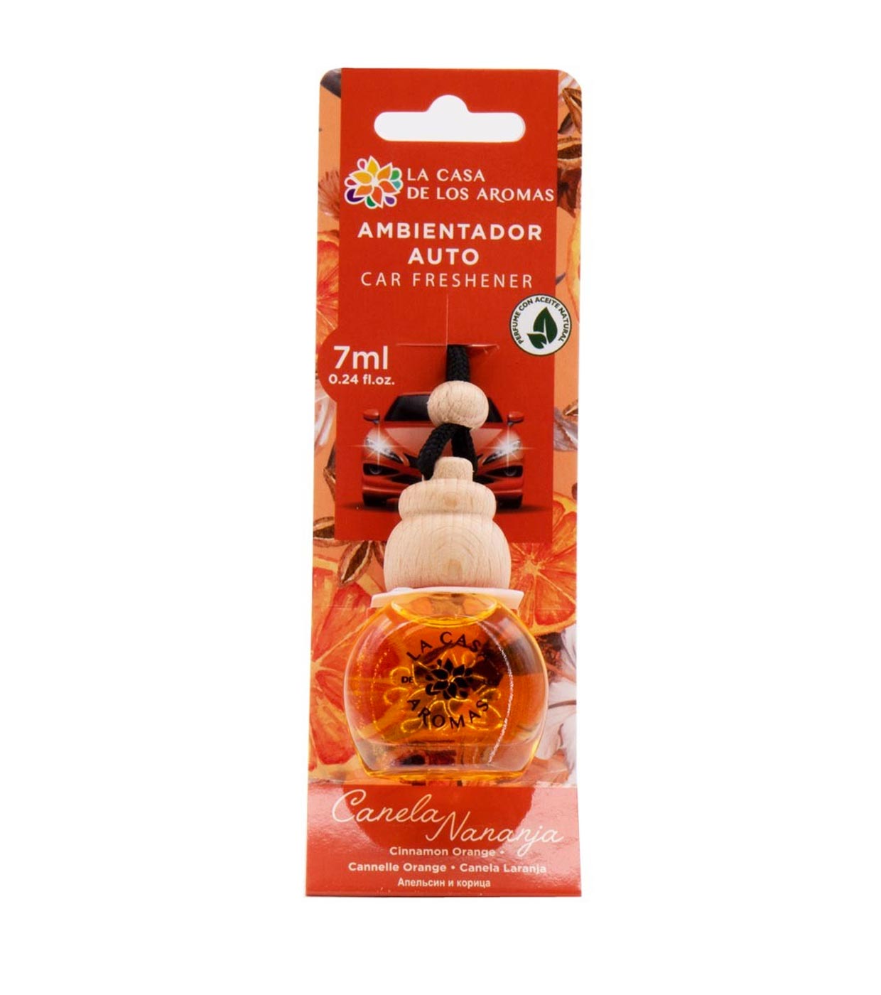 Novo ambientador para automóveis com aroma de laranja e canela, doce e picante, cintilante e quente. Dê às suas viagens um toque muito acolhedor!