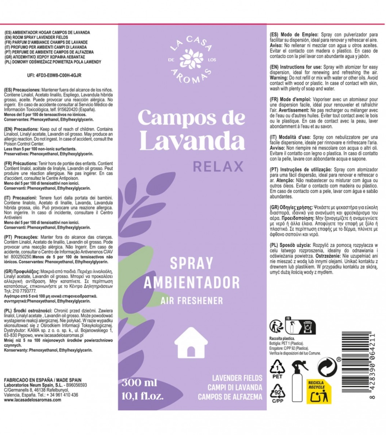 Renove o ambiente da sua casa com o ambientador em spray Campos de Lavanda da La Casa de los Aromas , o seu aliado perfeito para transformar qualquer divisão num espaço mais acolhedor, limpo e propício ao bem-estar.
