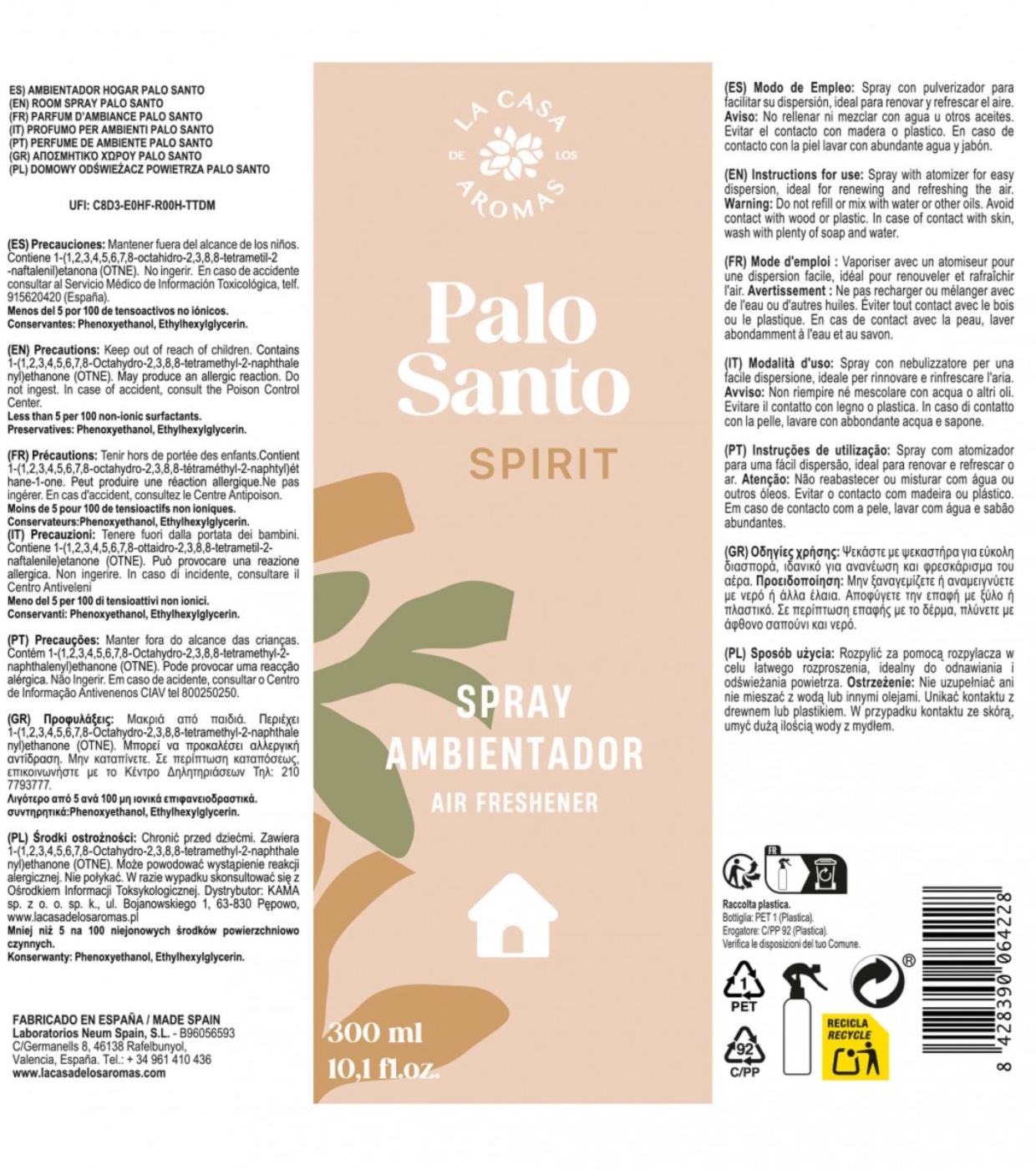 Transforme cada canto da sua casa num oásis de frescura com o ambientador em spray Palo Santo da La Casa de los Aromas , o seu melhor aliado para criar ambientes acolhedores e animados.