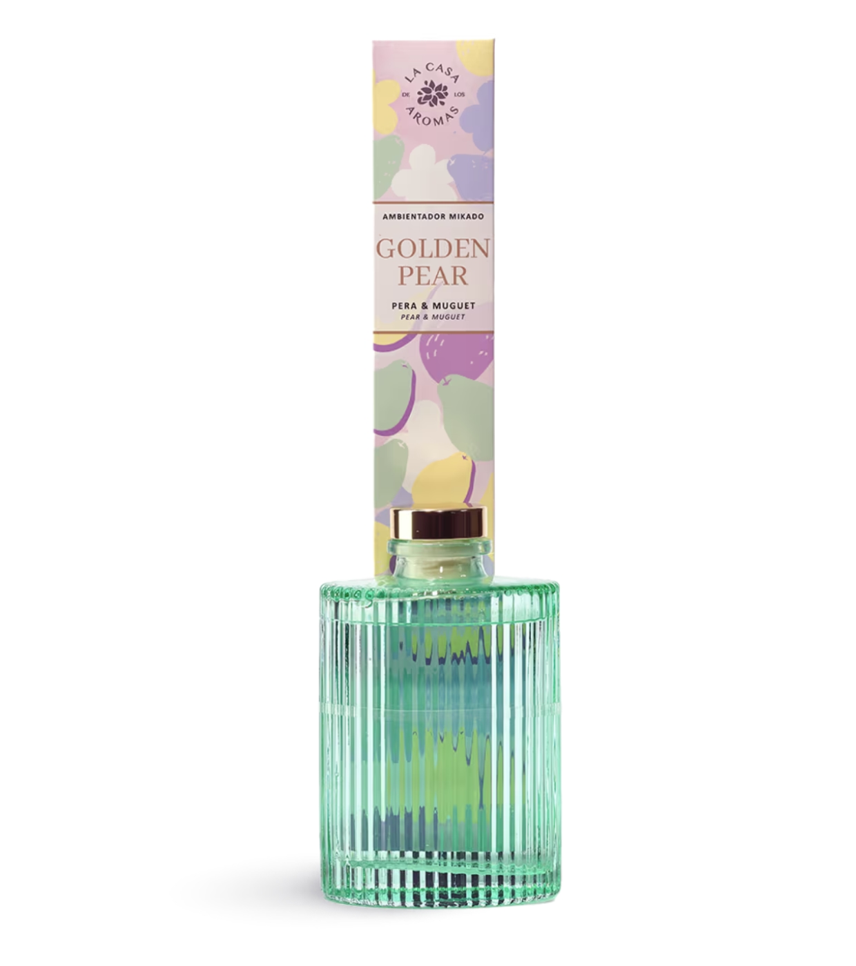 Cor, frescor e personalidade para sua casa. Brandy Golden Pear da La Casa de los Aromas destaca-se pelo seu design em vidro canelado num tom verde intenso, uma peça decorativa moderna e artística que traz caráter e dinamismo a qualquer espaço.