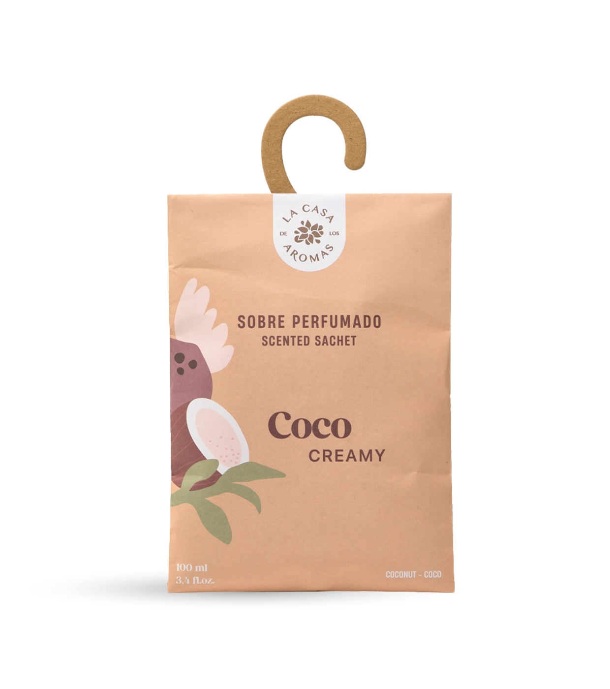Este sachê perfumado da La Casa de los Aromas para a casa envolve o seu espaço com um aroma profundamente doce e viciante, onde o coco cremoso se torna o protagonista absoluto.