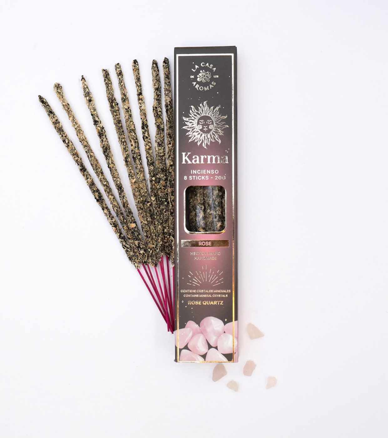 O sussurro aveludado das pétalas de rosa flutua no ar como um abraço floral suave e reconfortante com este incenso em bastão da La Casa de los Aromas .