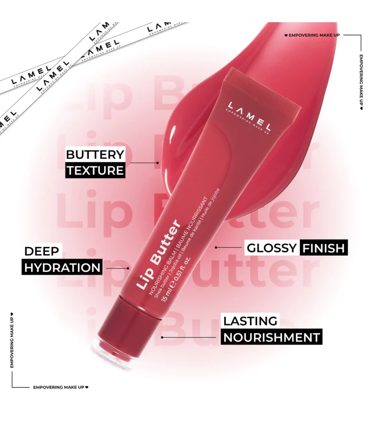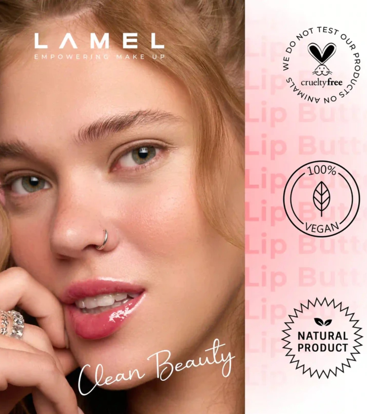 Desfrute de lábios macios e nutridos com um brilho espetacular graças a este bálsamo labial Butter da Lamel , seu aliado perfeito para uma boca irresistível todos os dias.