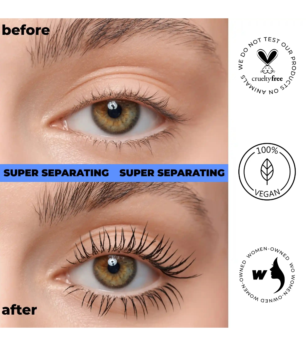 Sua escova de silicone com formato especial, com cerdas de diferentes comprimentos, envolve cada cílio para criar volume máximo, separação perfeita e uma curvatura marcante.