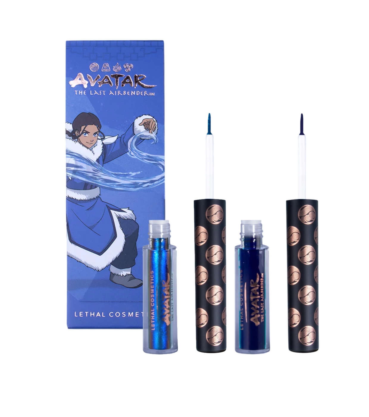 A personalidade da água, capturada em um elegante conjunto de delineadores da Lethal Cosmetics que combina dois contrastes perfeitos: um tom mate sereno e um acabamento multicromático dinâmico, inspirado no fluxo, na calma e na força do elemento água.