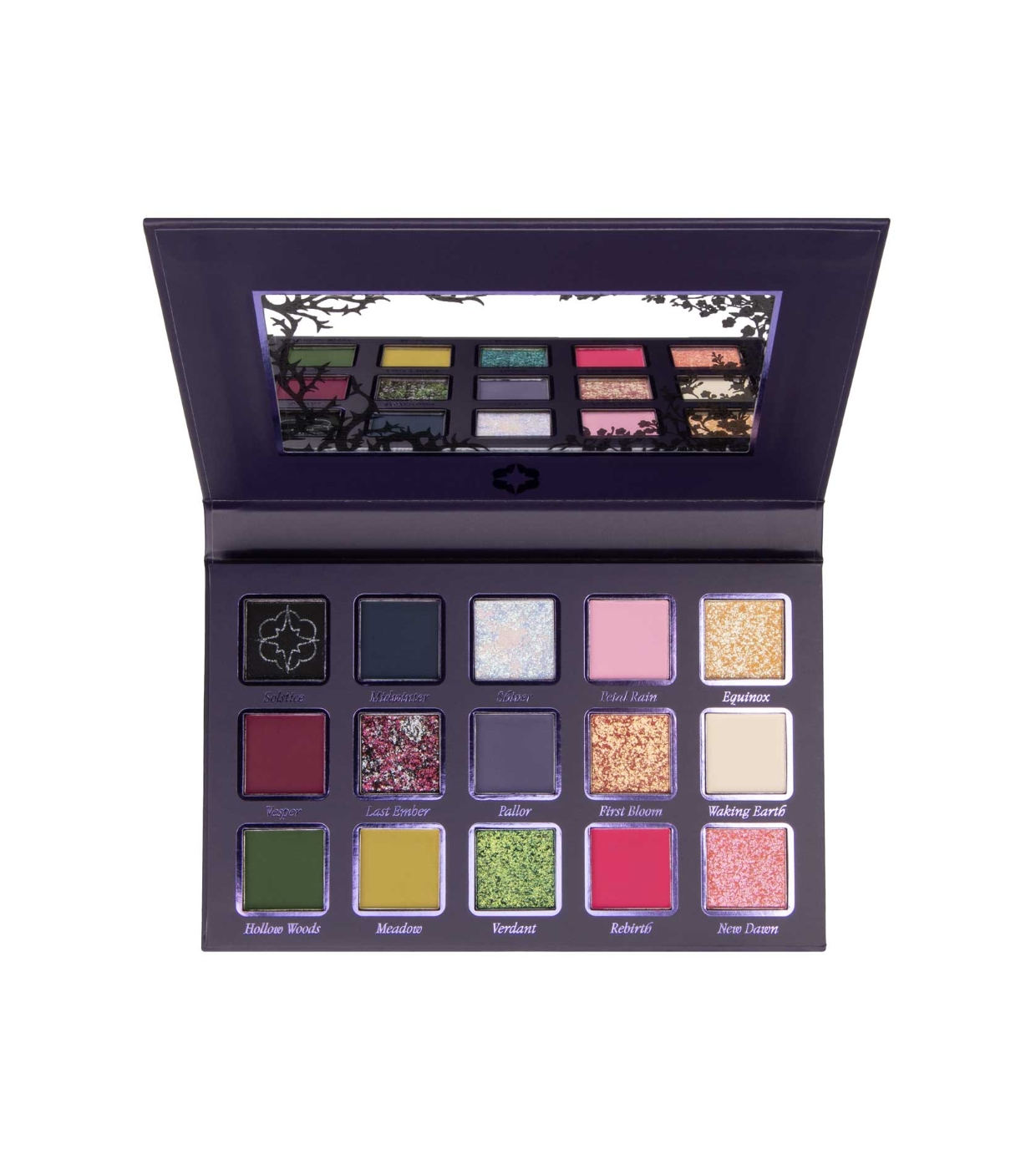 Esta paleta de sombras com 15 cores conta uma história de renascimento, onde a sombra encontra o verde e o brilho dá lugar à cor.
