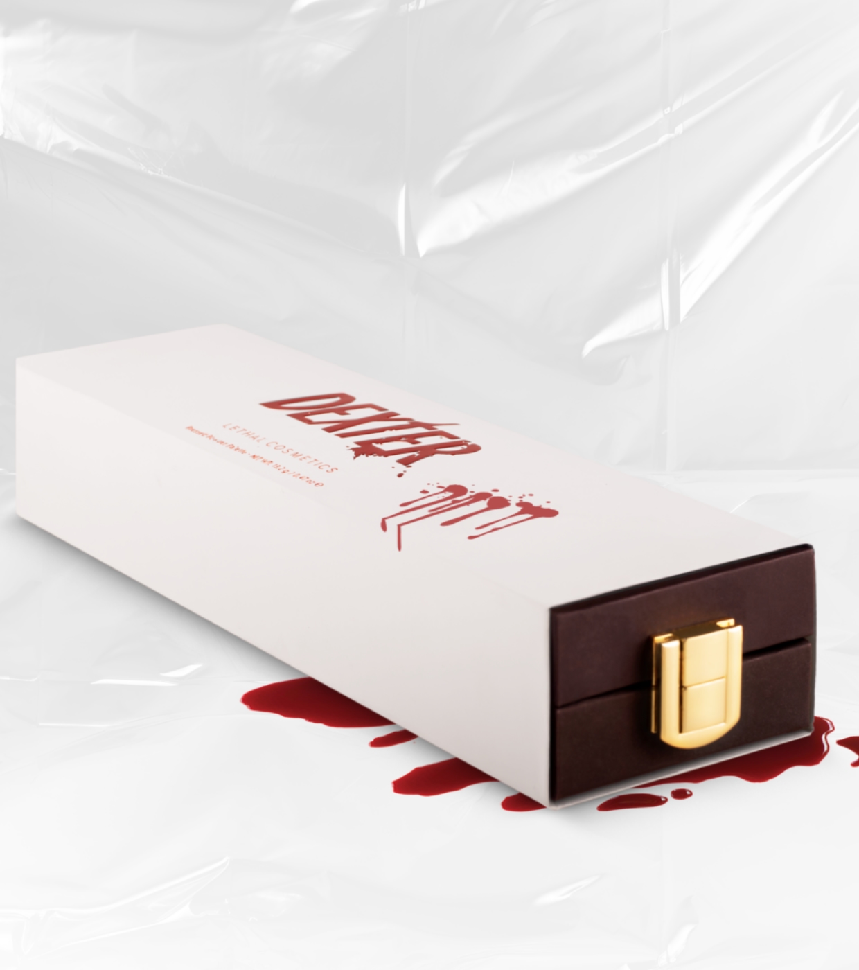 Lethal Cosmetics Lethal Cosmetics Paleta de sombras inspirada na icônica caixa de sombras de sangue de Dexter, esta paleta contém 11 sombras e é um item de colecionador exclusivo para fãs do suspense e amantes de maquiagem ousada.