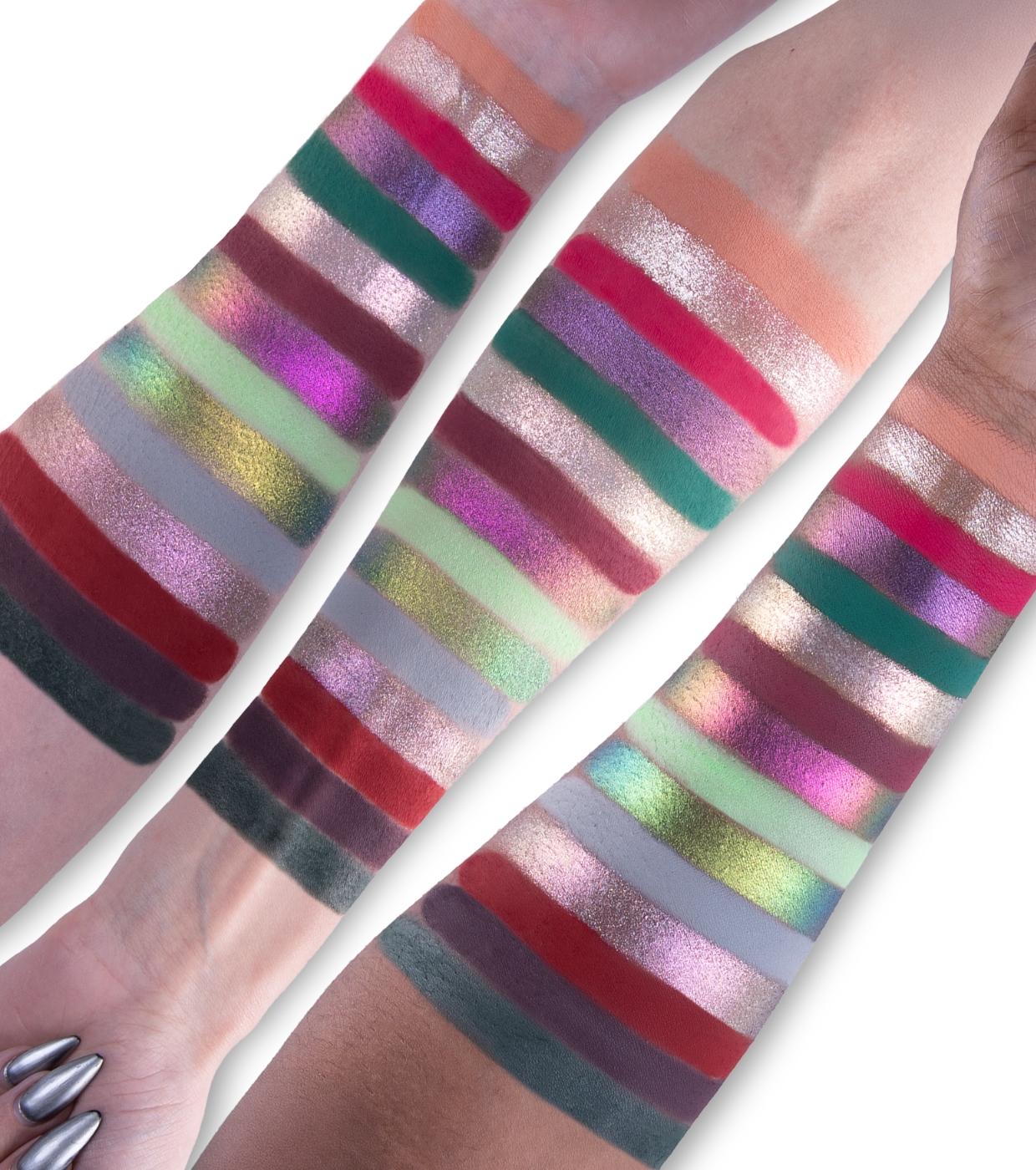 Inspirada em criaturas de sangue frio, perigosas, magnéticas e de uma beleza impressionante, esta paleta combina tons vibrantes e profundos com acabamentos que captam a luz como escamas ao sol.