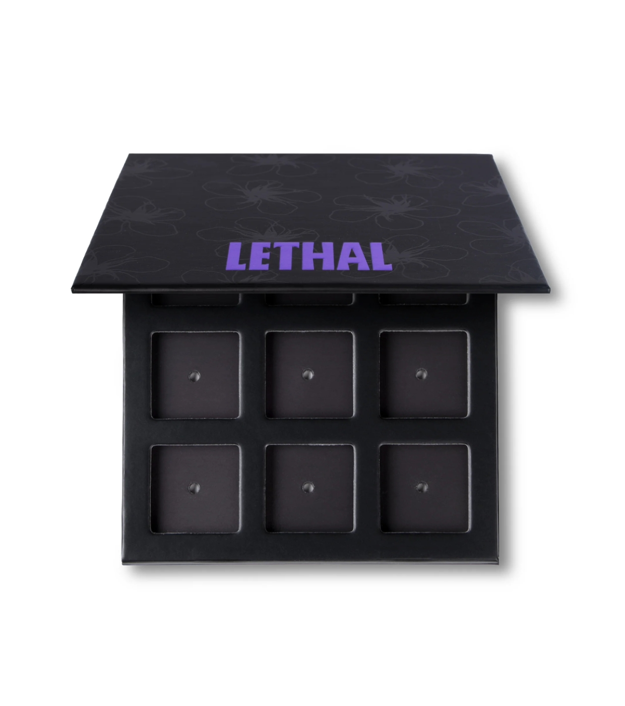 A paleta magnética Oleander 9 da Lethal Cosmetics é compacta, durável e totalmente personalizável, com 9 sombras ou delineadores à base de água, criada pela nossa maquiadora interna.