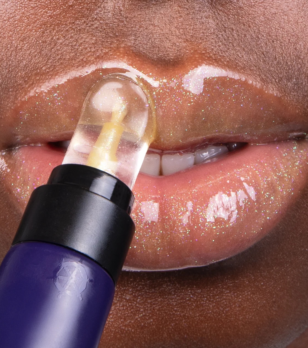 Um gloss labial com sabor de abacaxi da Lethal Cosmetics , com um tom amarelo translúcido sutil e um brilho duocromático vermelho e verde que não passará despercebido.