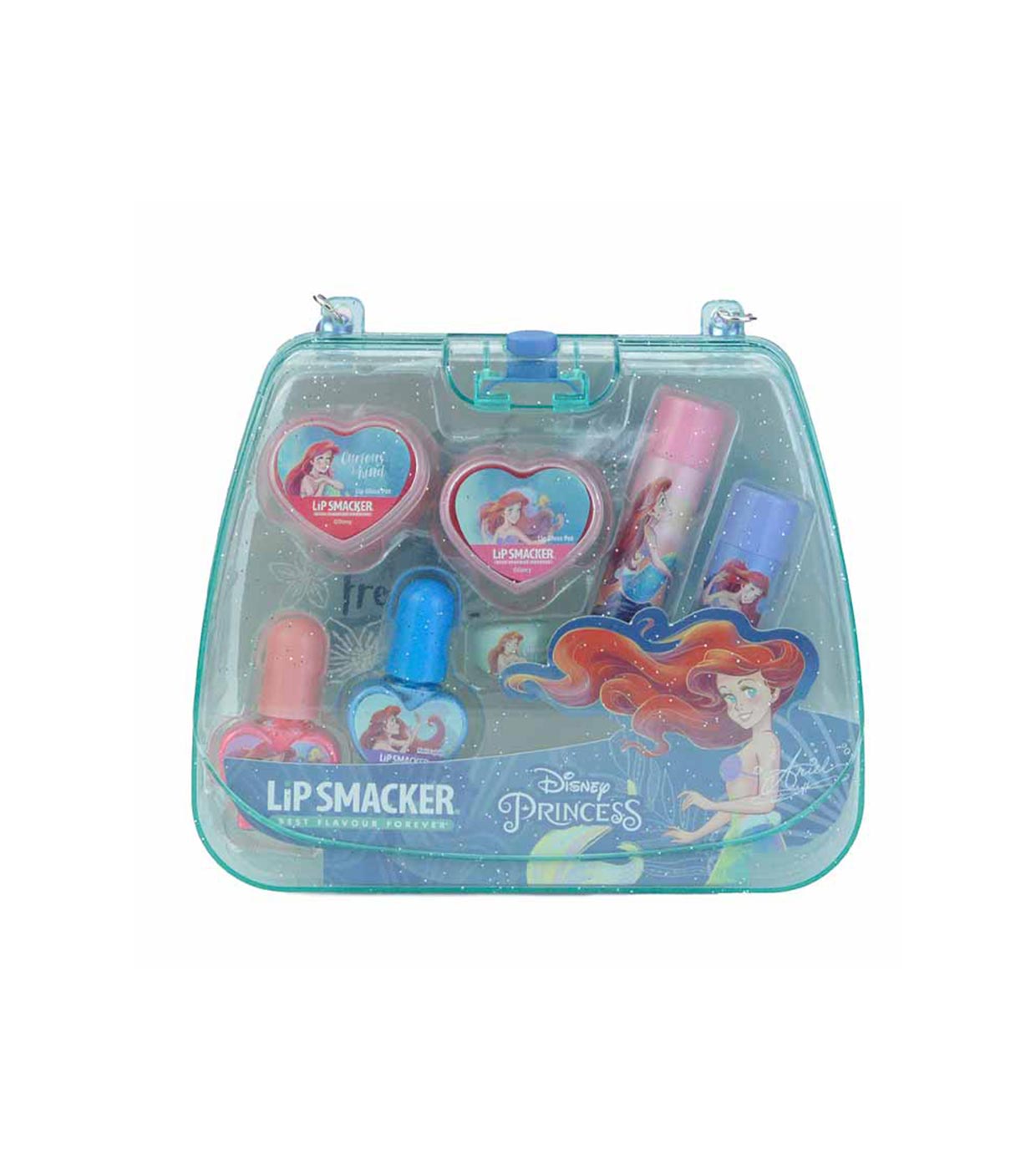 Das águas dinamarquesas, onde Ariel nadou com suas amigas, chega esta maravilhosa mini bolsa de maquiagem Ariel da LipSmackers.